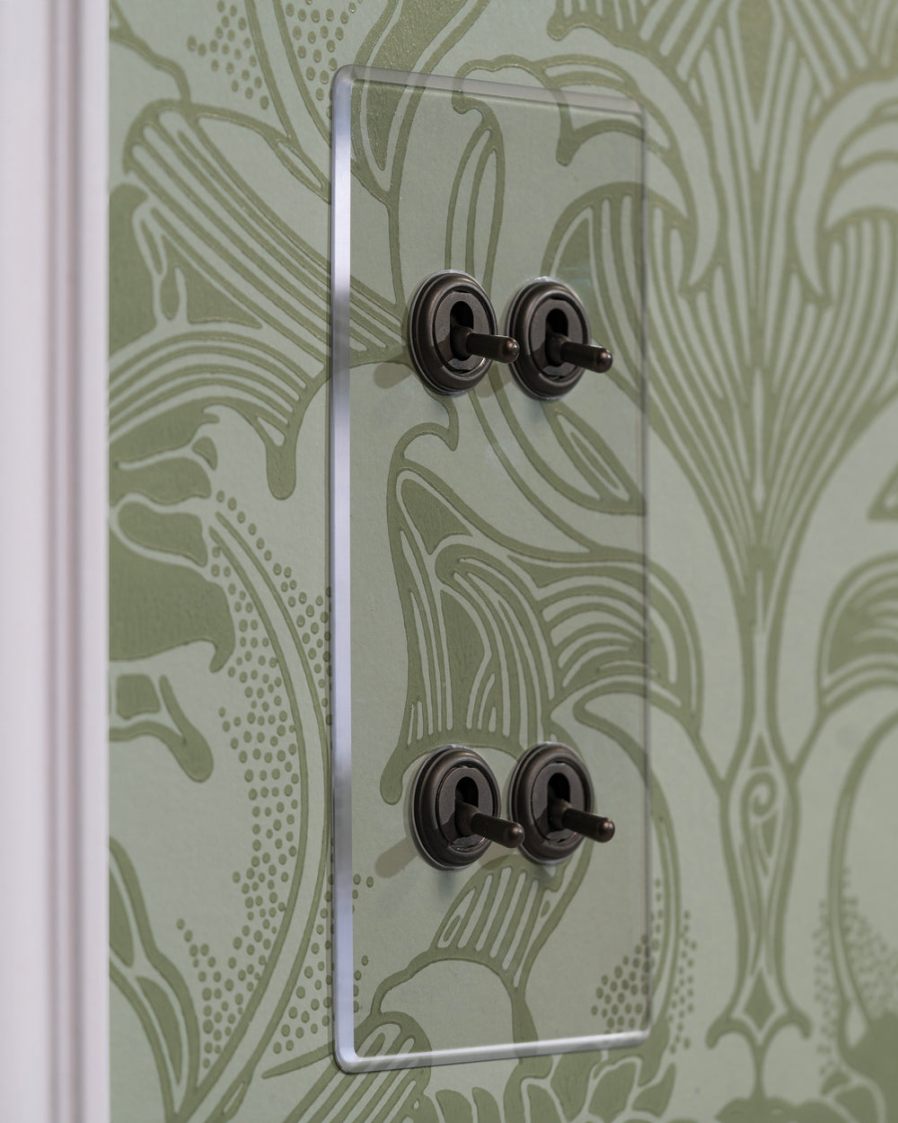 Our clear switches and sockets come with backing paper that you can either paint, or use as a wallpaper template. When you're happy with your chosen look, secure the clear front plate over the backing paper to conceal the wires. All our electrical products should be installed by a qualified electrician.