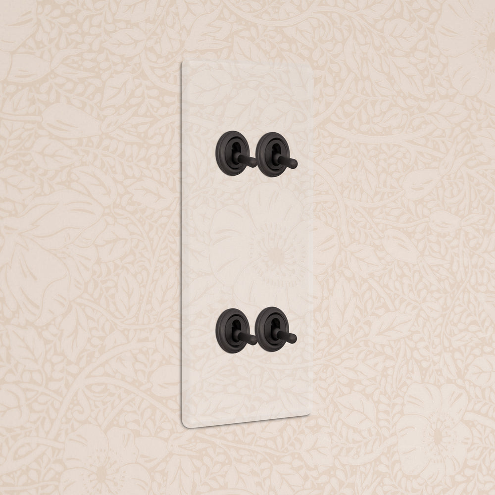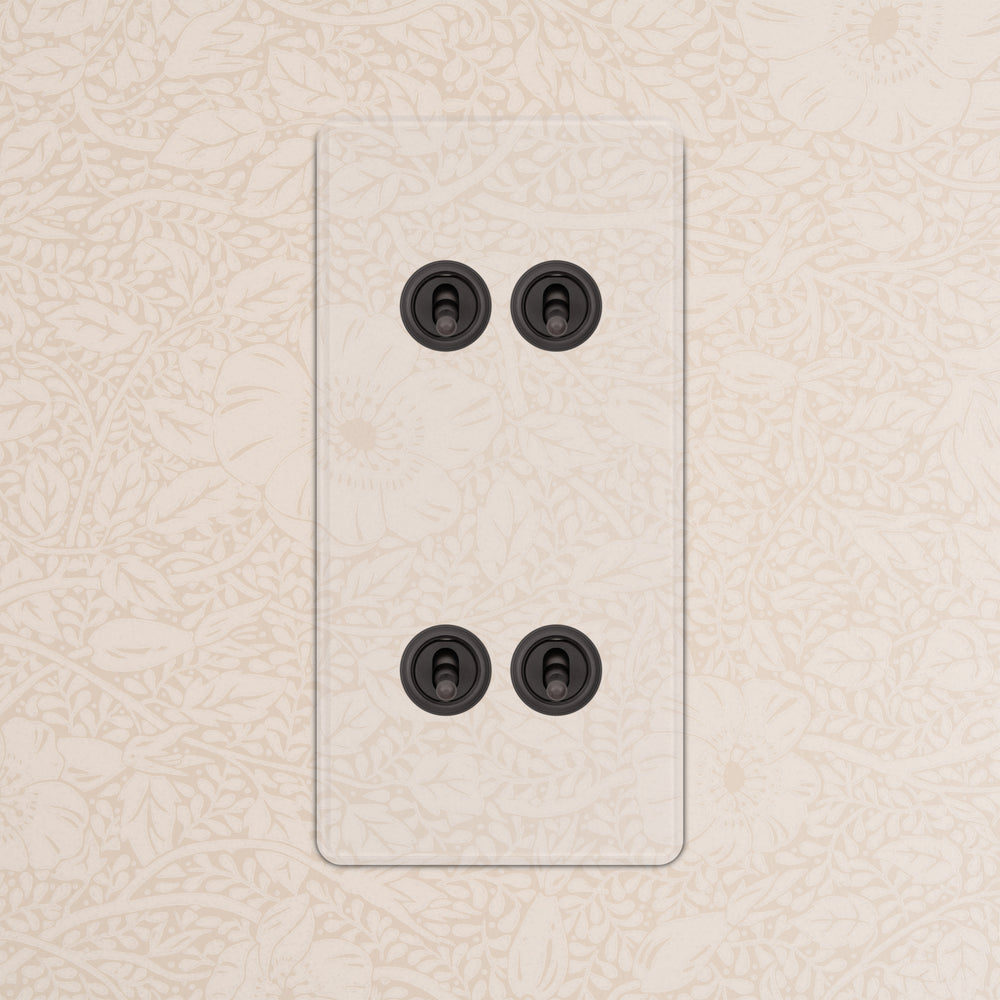 Our 4 gang vertical two-way toggle switch is a modern take on the classic dolly design. We’ve crafted it to be as sleek and timeless as possible in any interior setting.