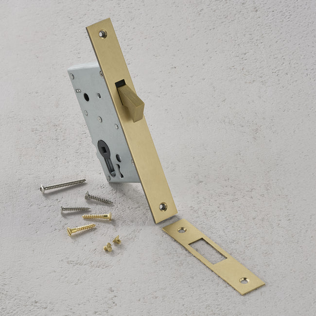 It comes with a solid brass face plate and strike plate, along with refined mounting screws, for a look that’s clean and considered.