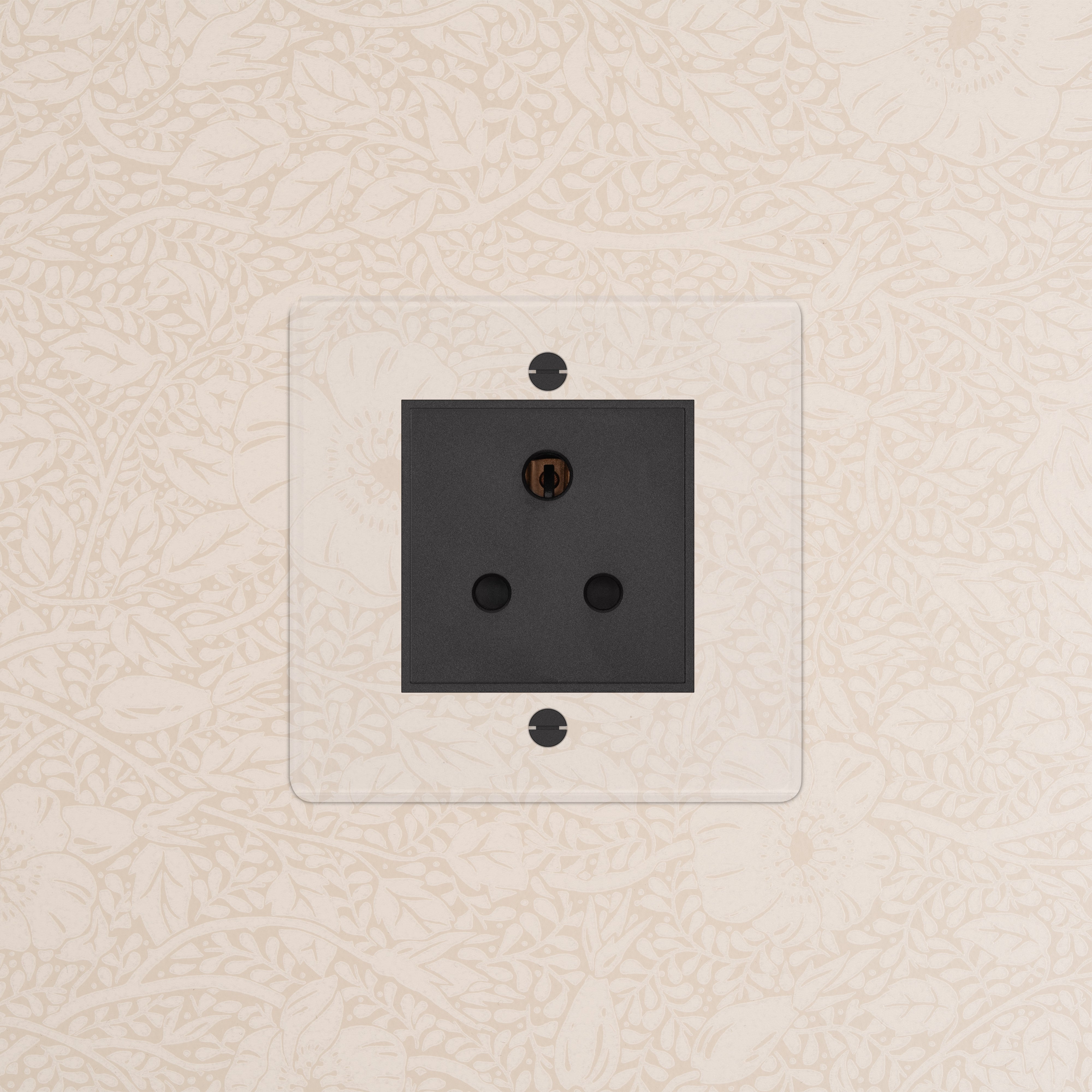 The clear plate is made from 2mm transparent polycarbonate, which gives the illusion of the outlet being built into the wall.