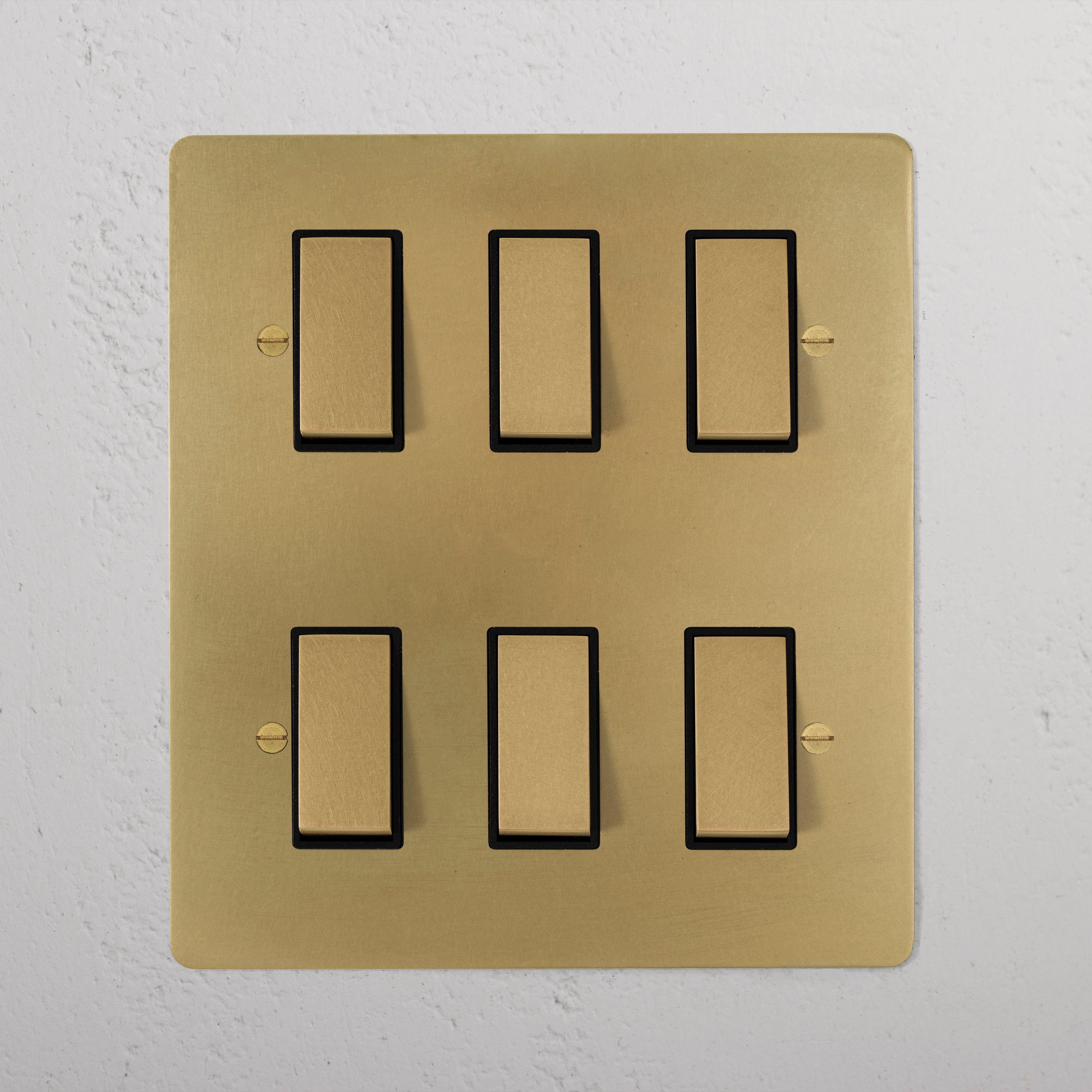 This six-gang, two-way rocker switch in our antique brass finish sits flush to the wall. The front plate is also just 1.5mm thick.