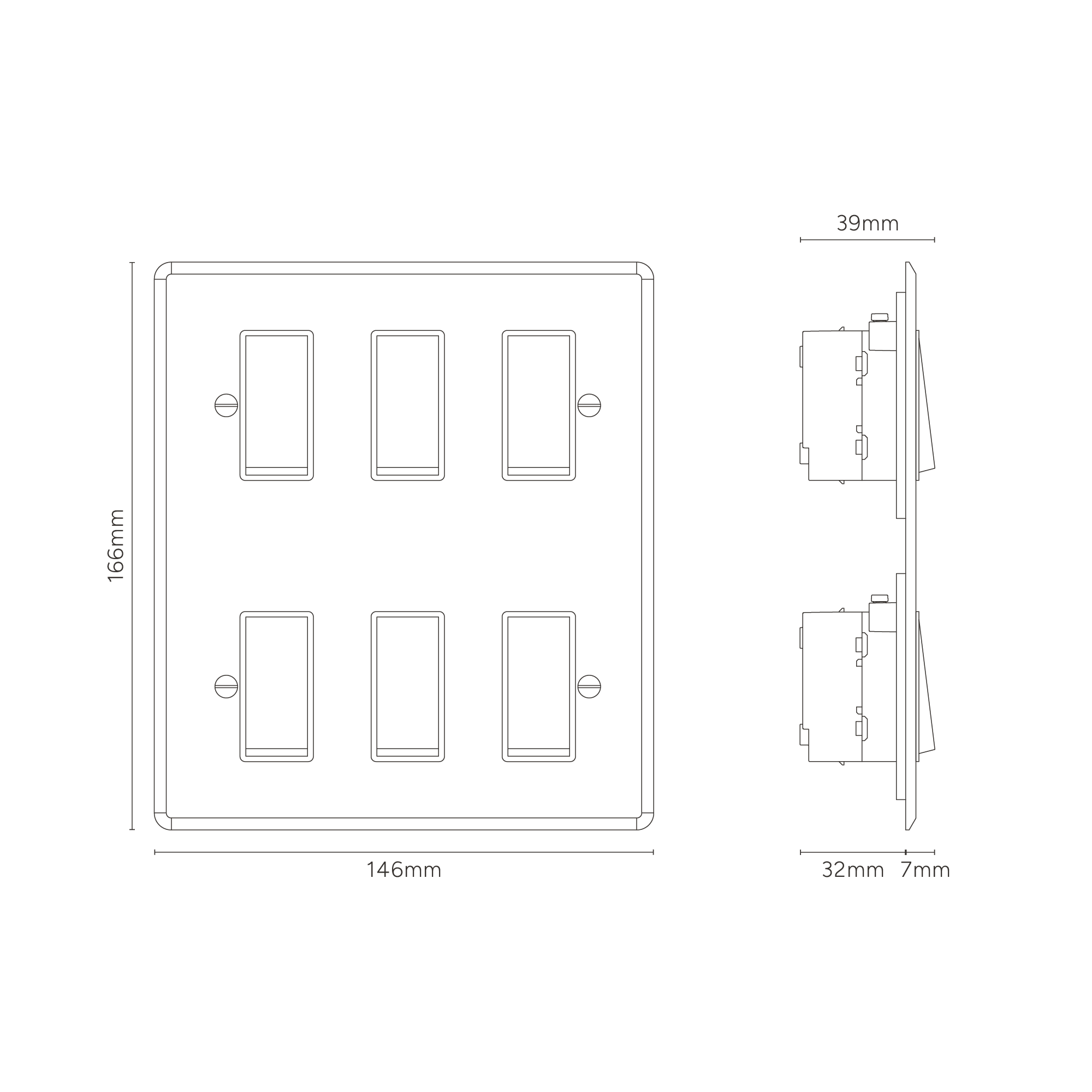 All Corston switches and sockets require a back box with a minimum depth of 35-47mm. It's the only way you'll achieve a flush finish. Our 6G and 8G switches must be used with a Corston double metal back box. because of the bespoke size.
