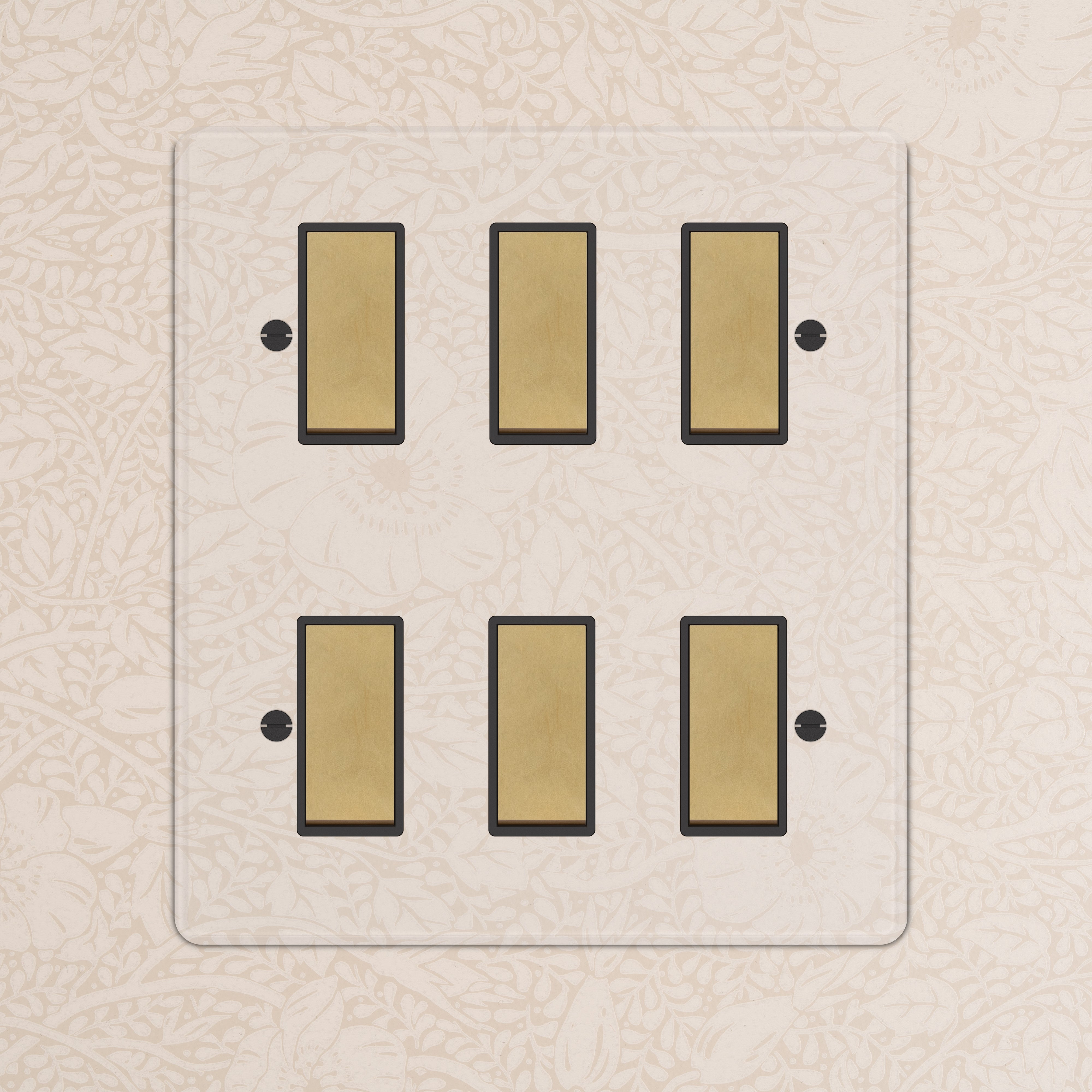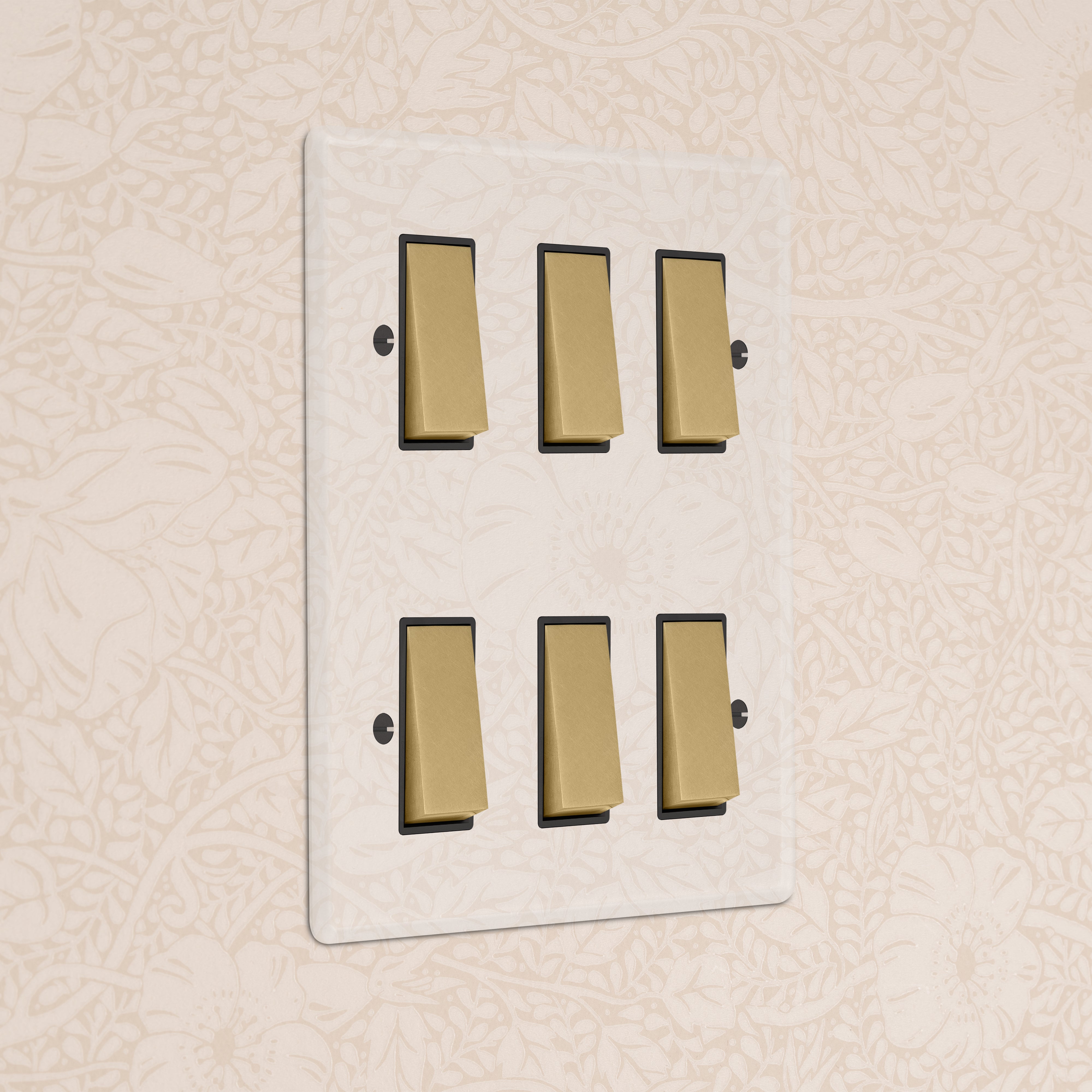 Our 6 gang two-way rocker switch is crafted to be as sleek and timeless as possible in any interior setting.