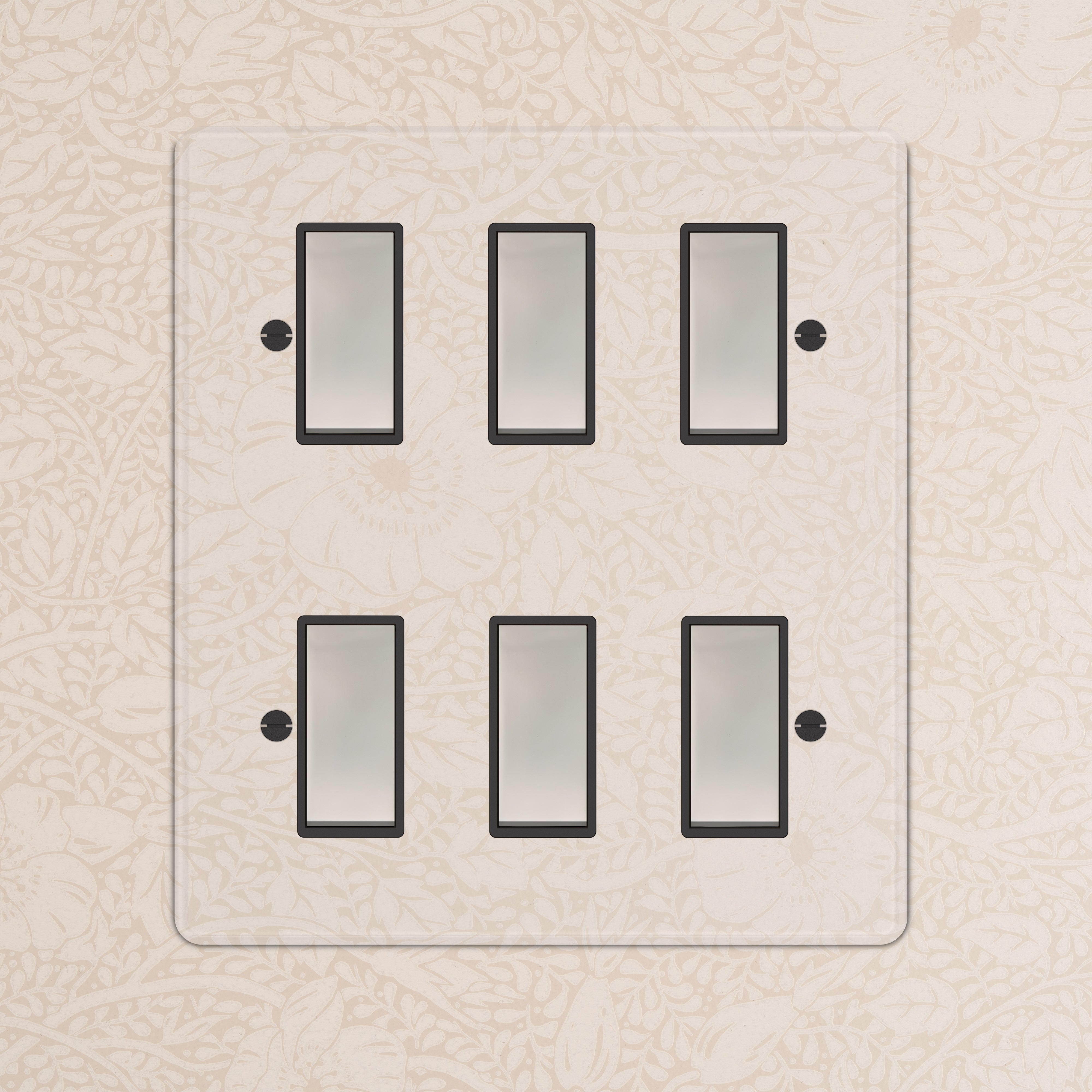 Our 6 gang two-way rocker switch is crafted to be as sleek and timeless as possible in any interior setting.
