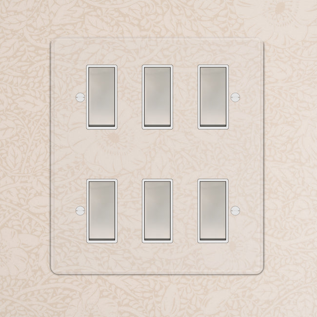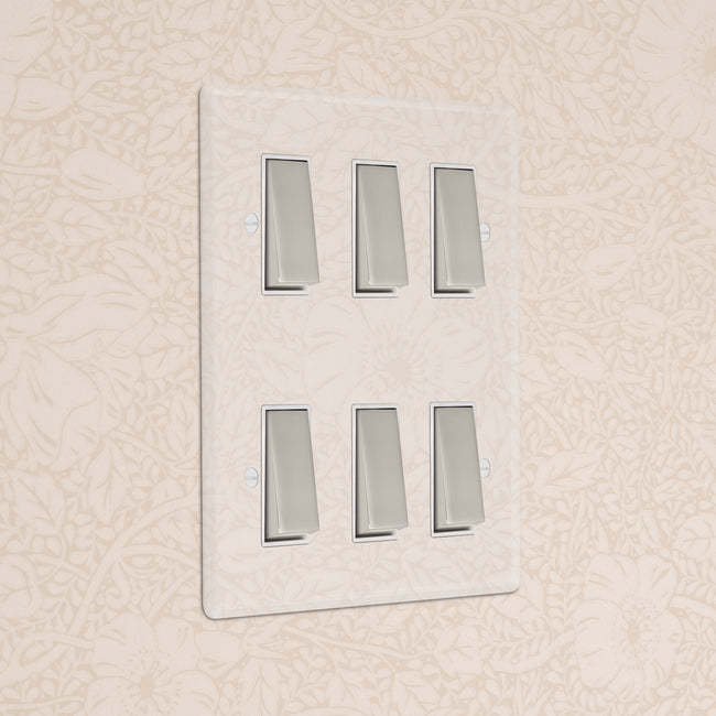 Our 6 gang two-way rocker switch is crafted to be as sleek and timeless as possible in any interior setting.