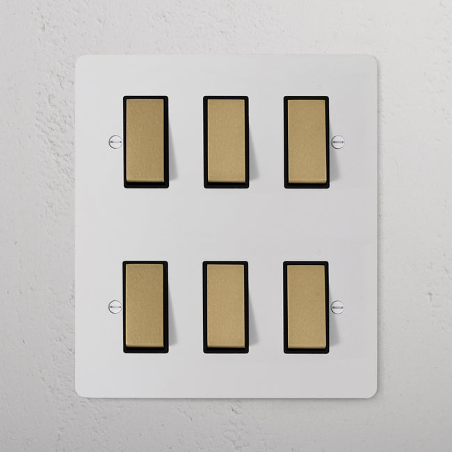Our 6 gang two-way rocker switch is crafted to be as sleek and timeless as possible in any interior setting.