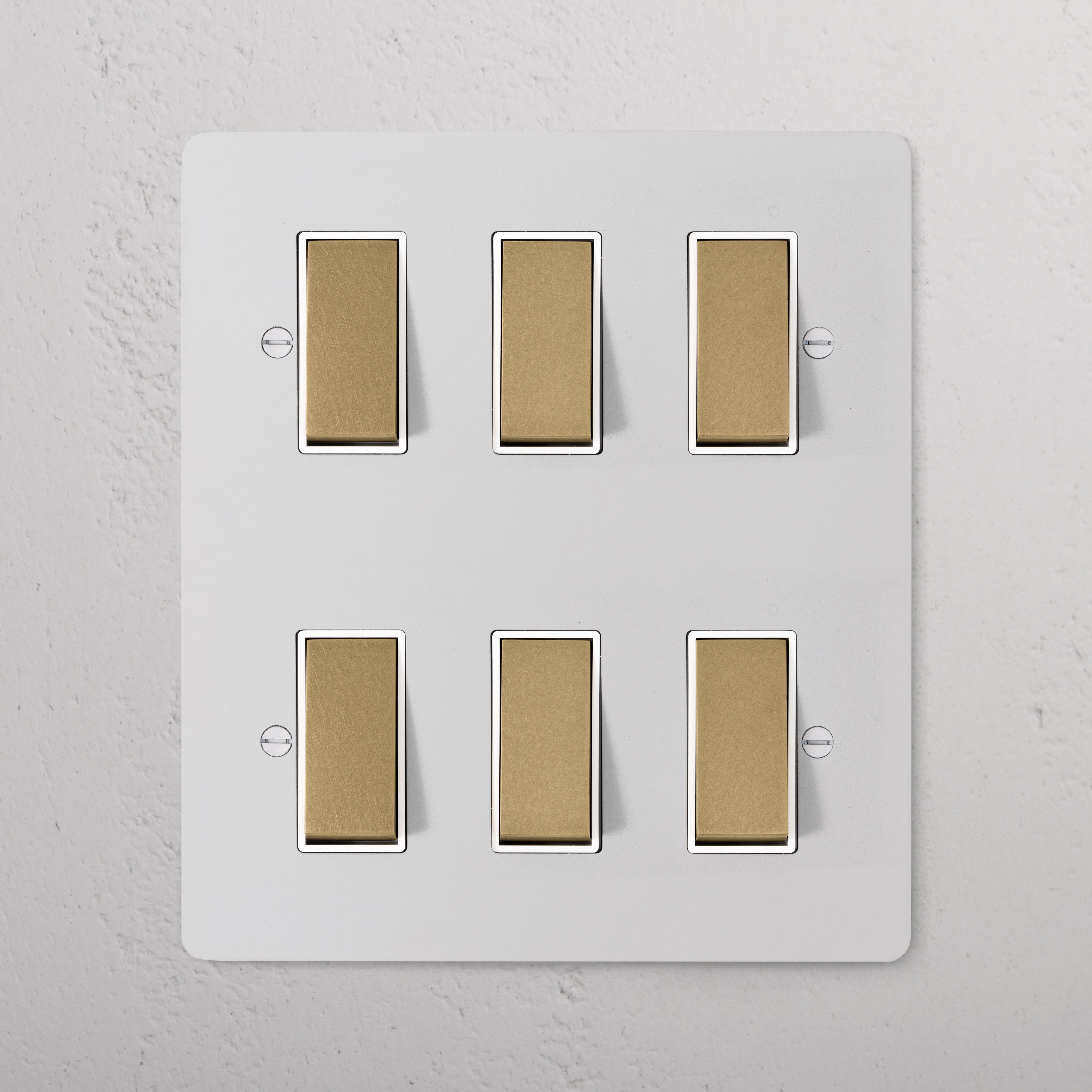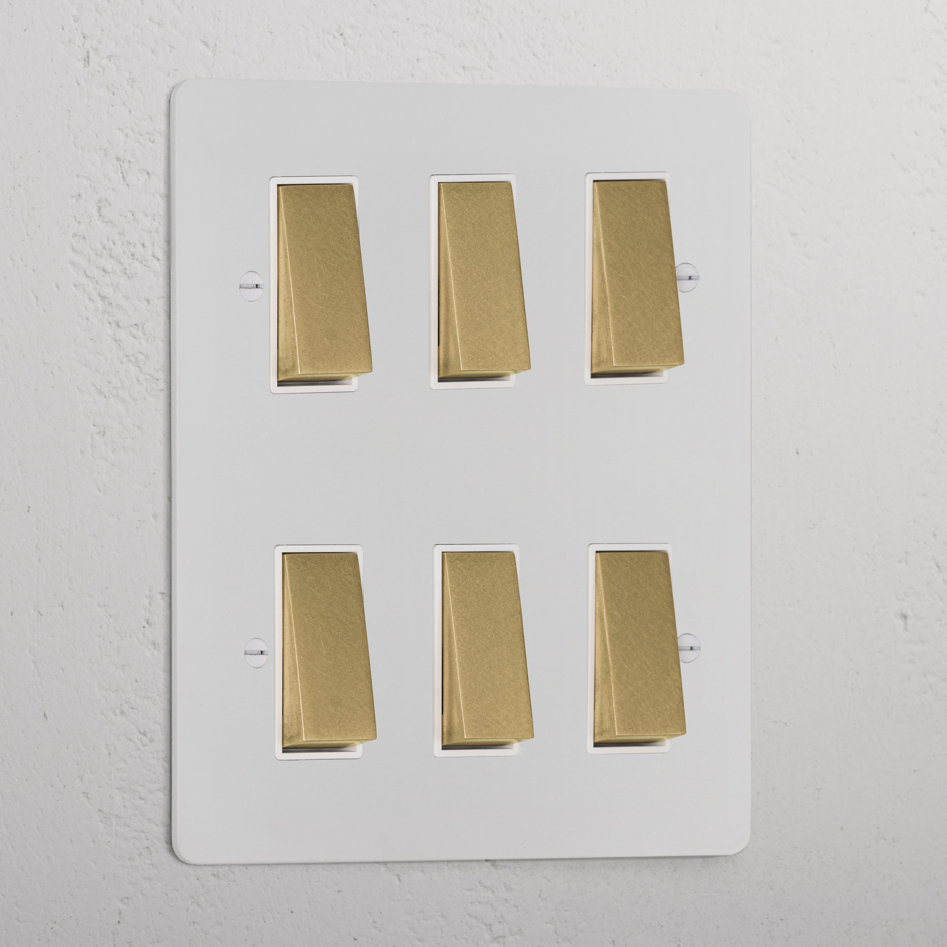 Our 6 gang two-way rocker switch is crafted to be as sleek and timeless as possible in any interior setting.