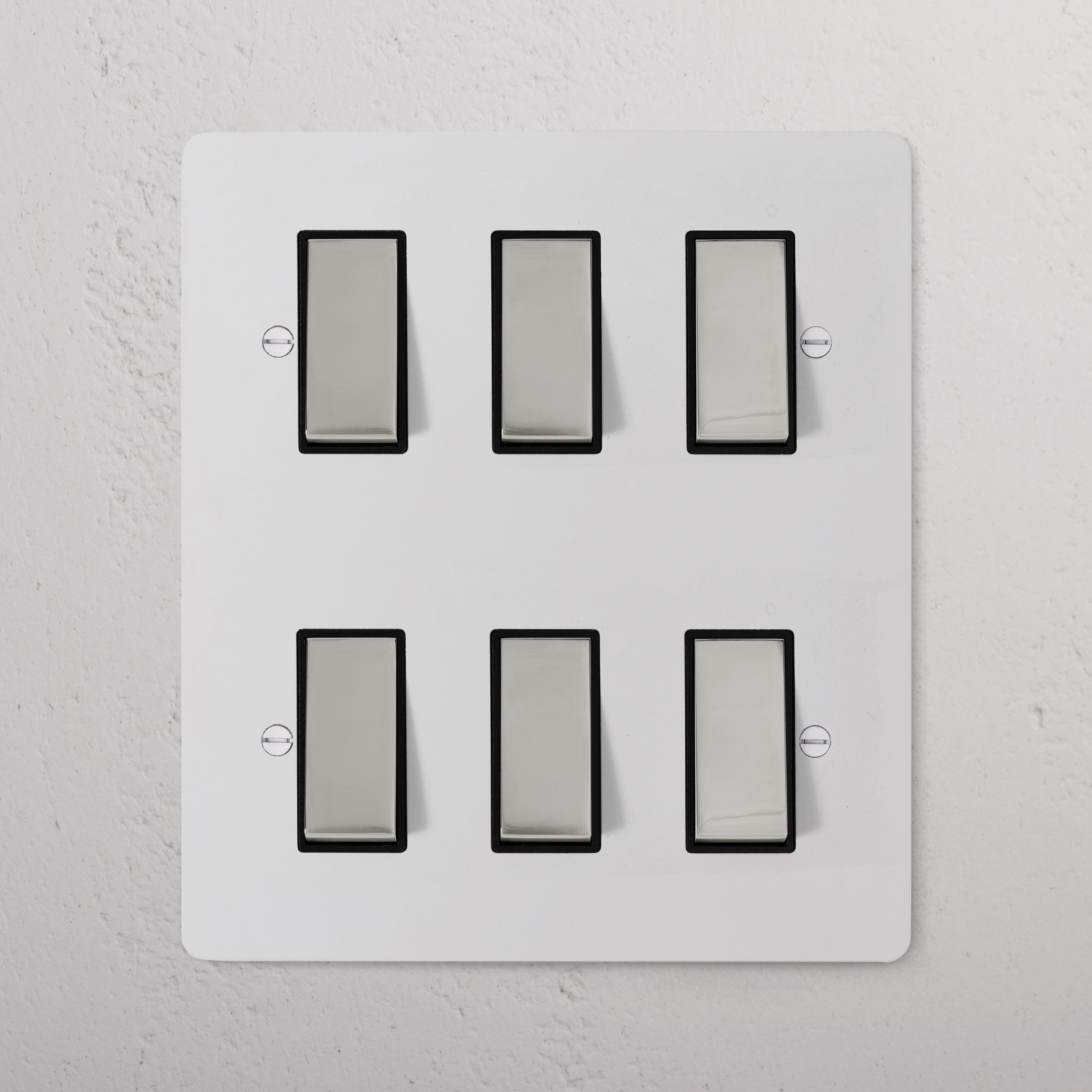 Our 6 gang two-way rocker switch is crafted to be as sleek and timeless as possible in any interior setting.