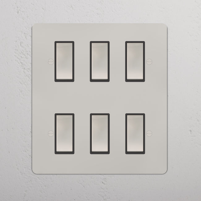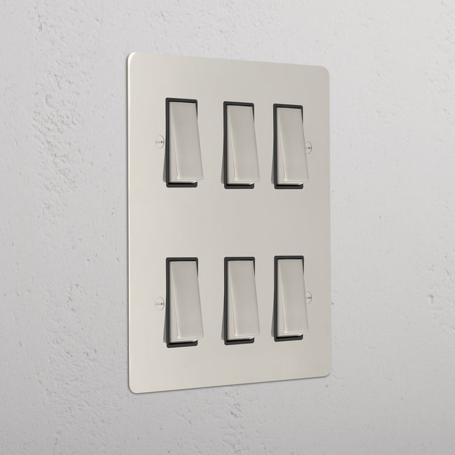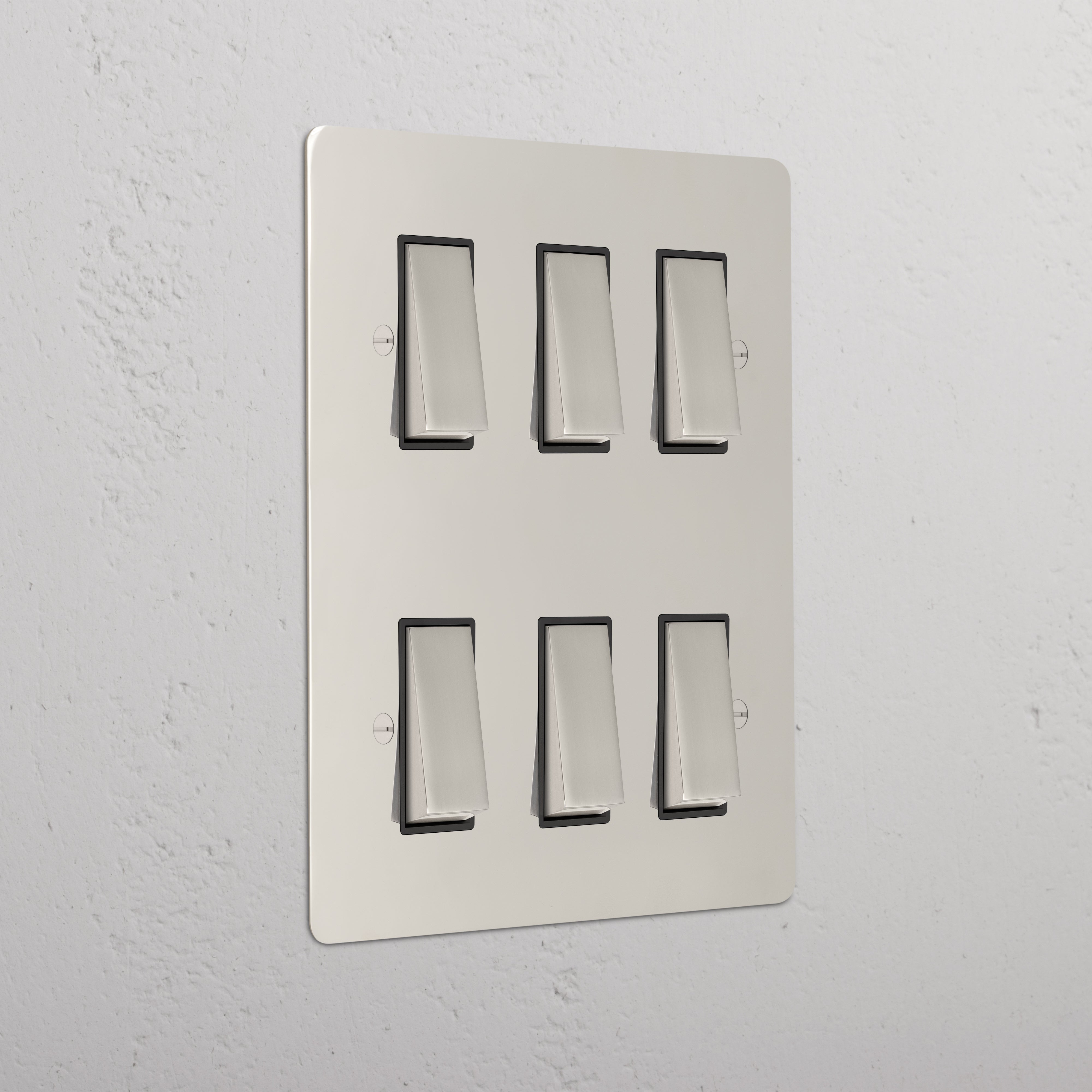 Our 6 gang two-way rocker switch is crafted to be as sleek and timeless as possible in any interior setting.