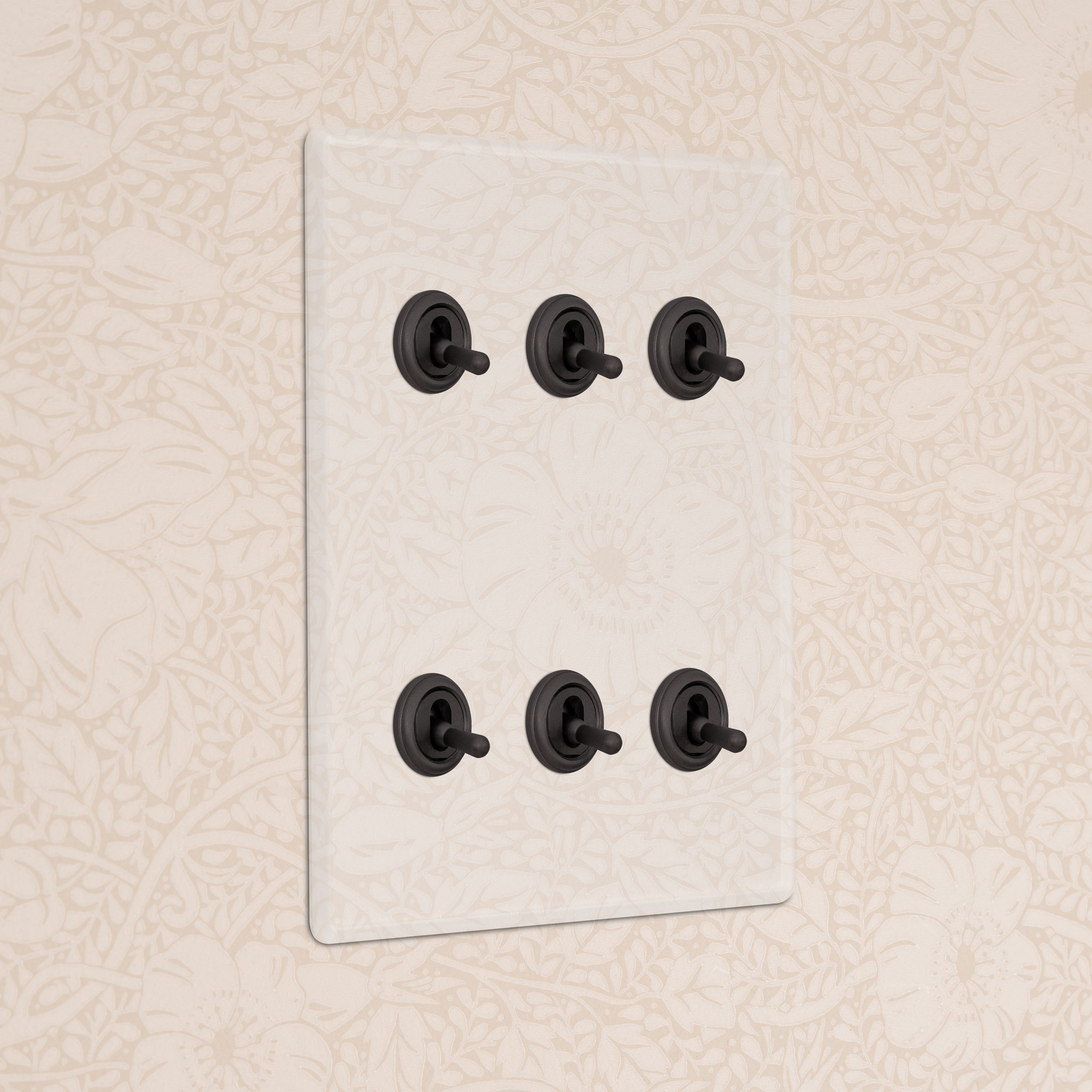 Our 6 gang two-way toggle switch is a modern take on the classic dolly design. We’ve crafted it to be as sleek and timeless as possible in any interior setting.