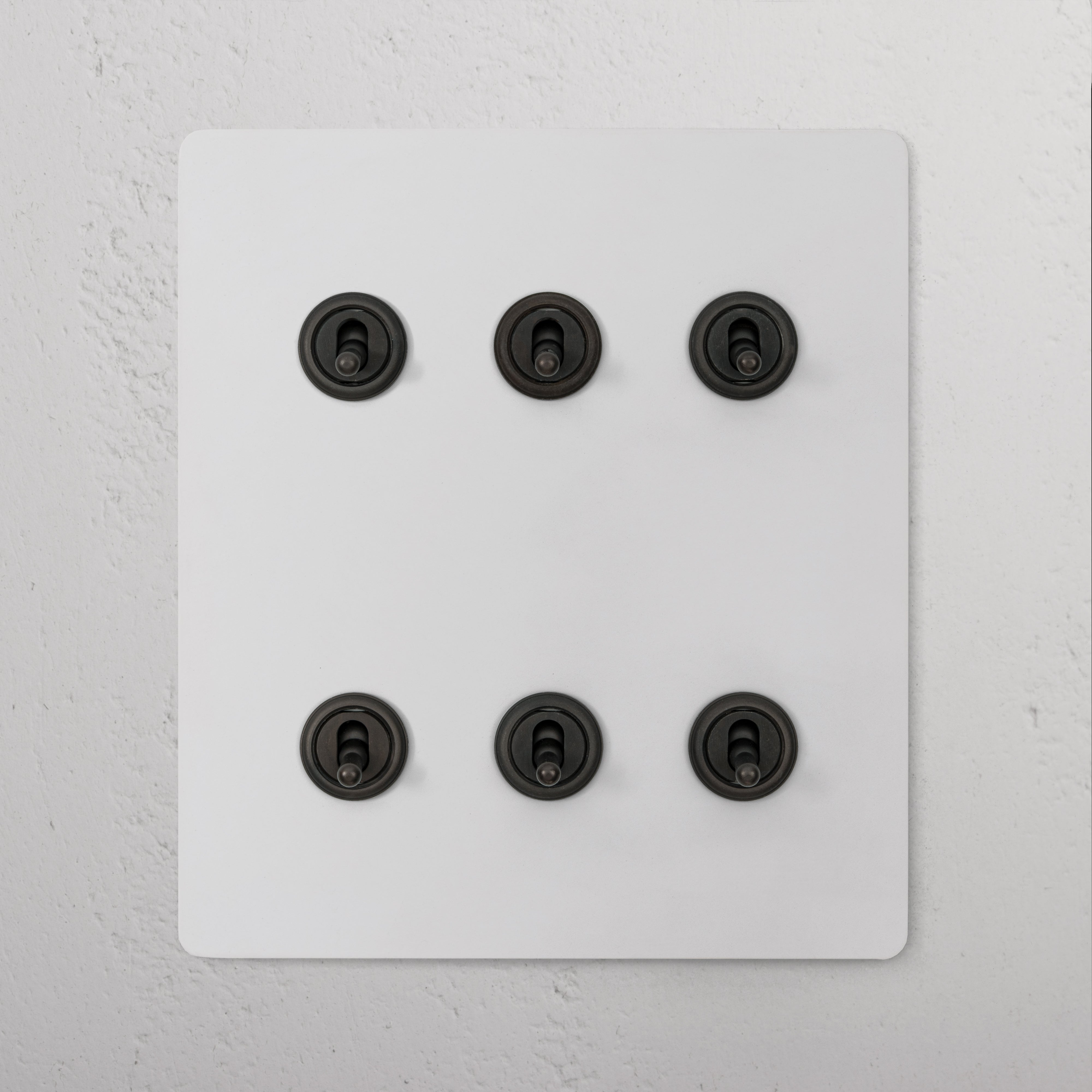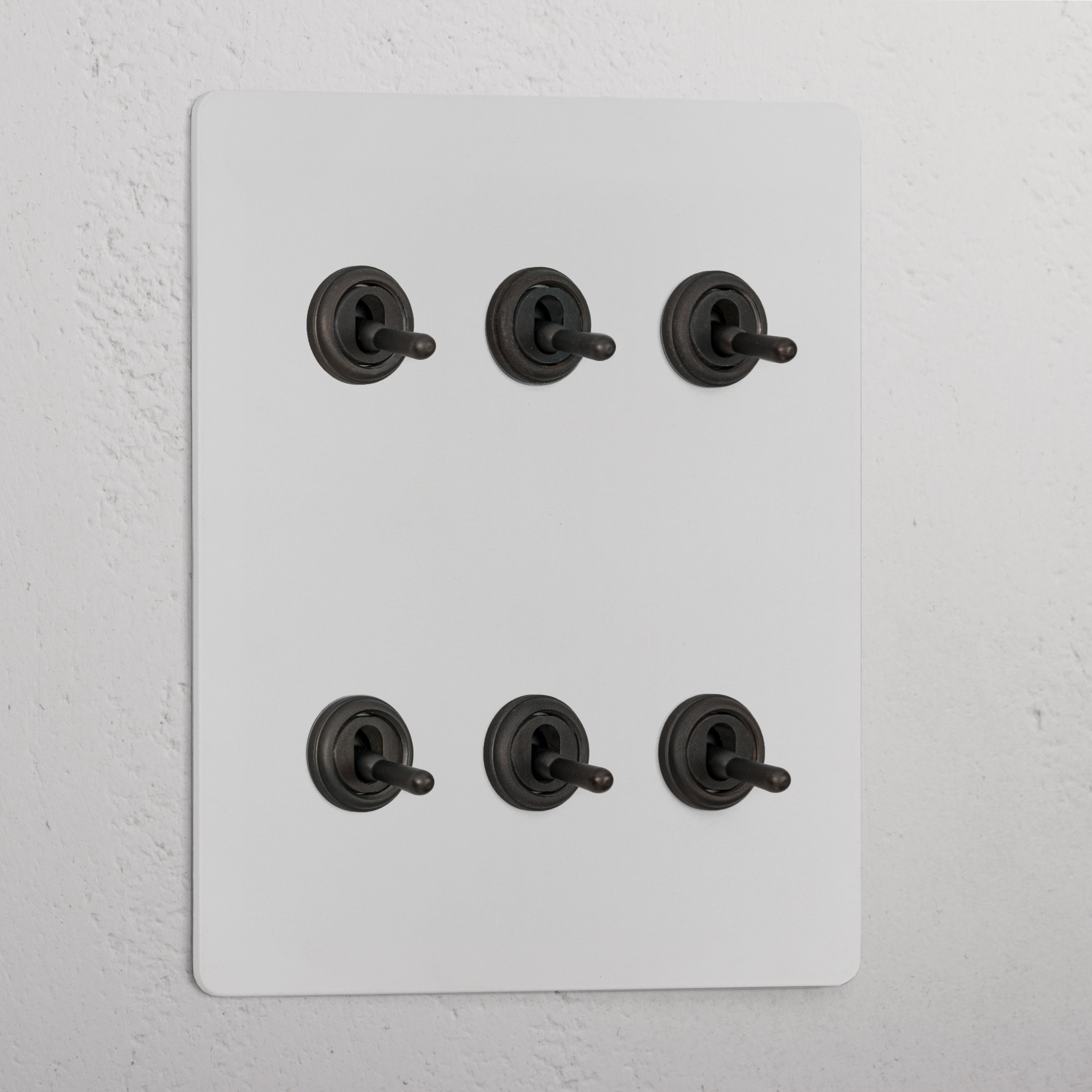 Our 6 gang two-way toggle switch is a modern take on the classic dolly design. We’ve crafted it to be as sleek and timeless as possible in any interior setting.