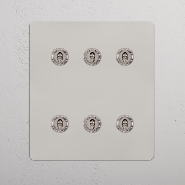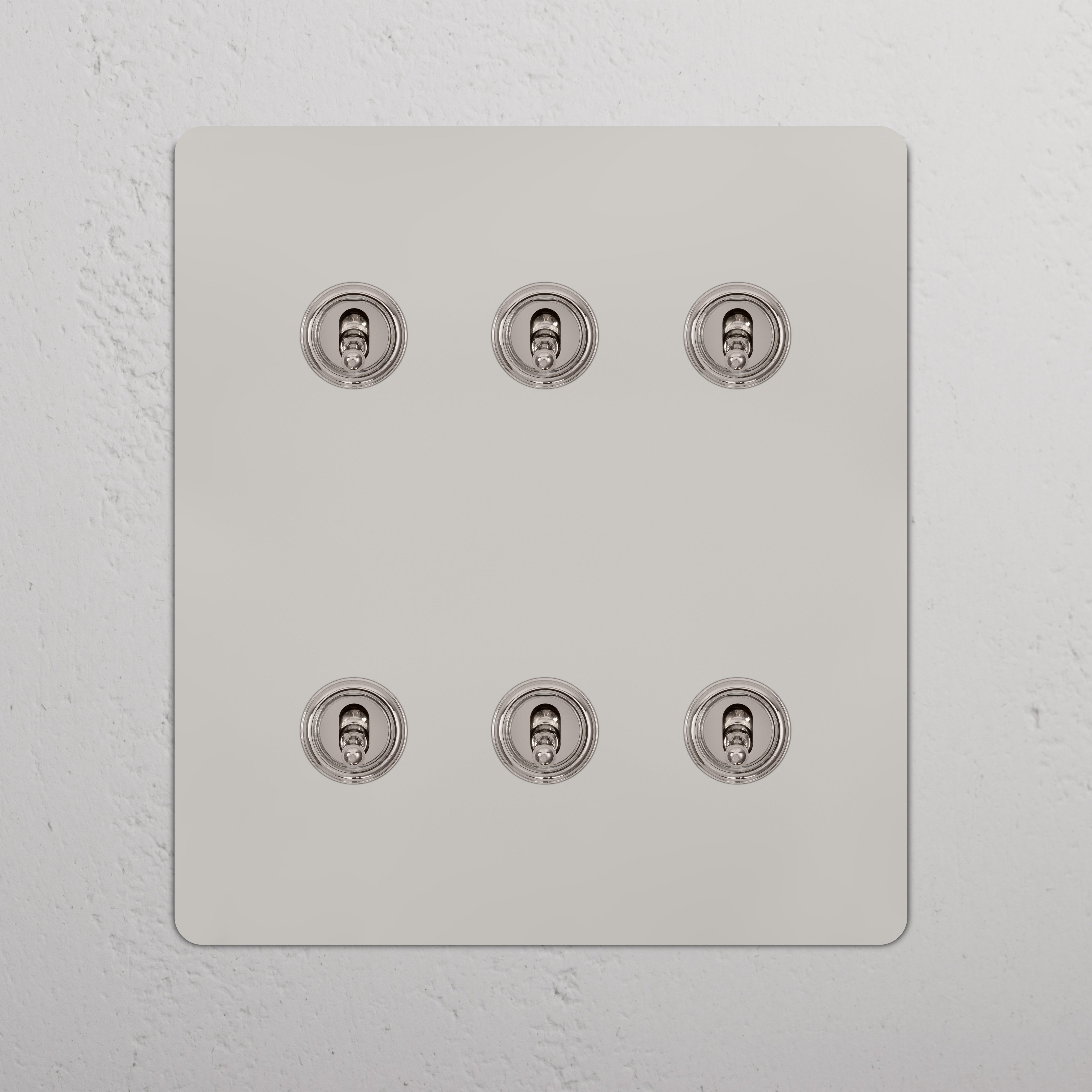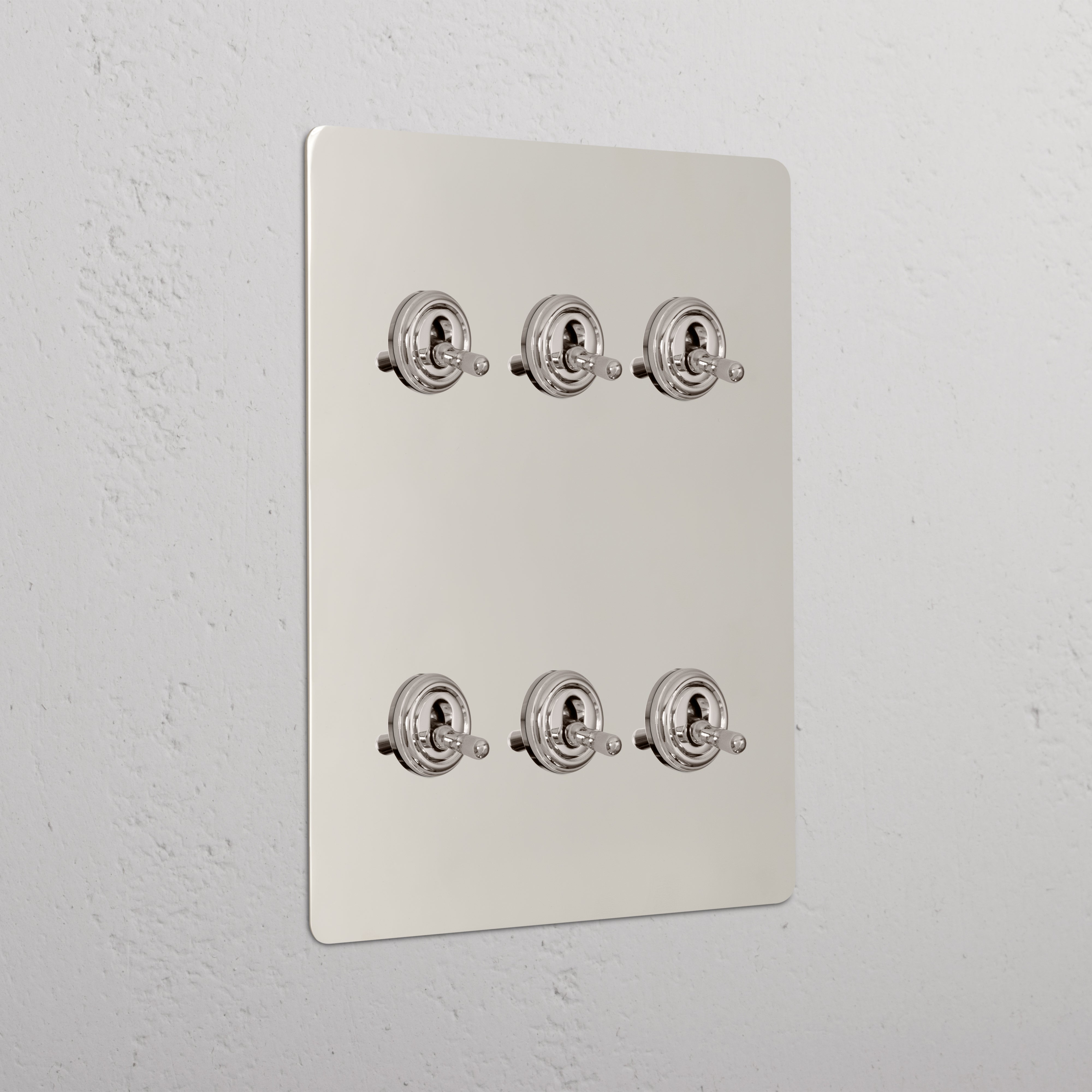 Our 6 gang two-way toggle switch is a modern take on the classic dolly design. We’ve crafted it to be as sleek and timeless as possible in any interior setting.