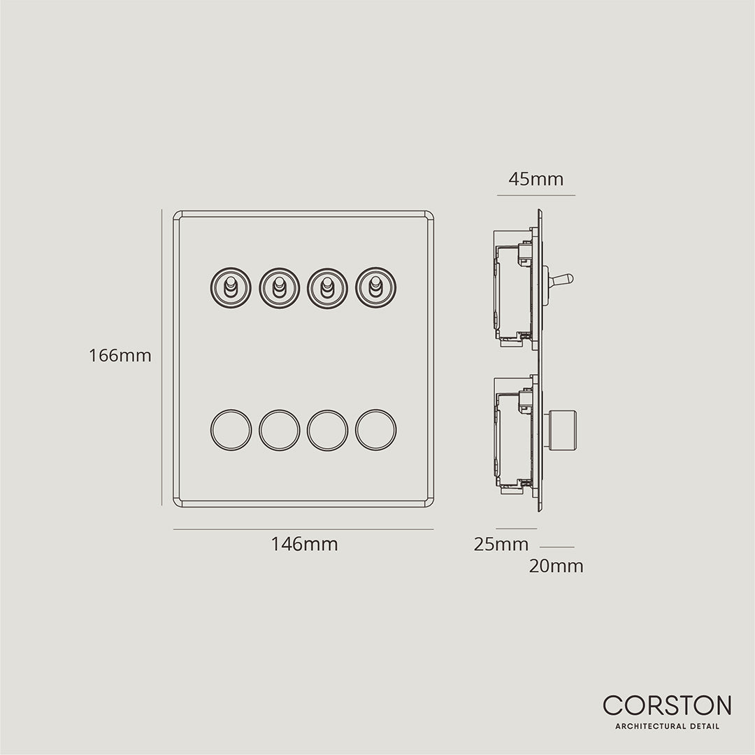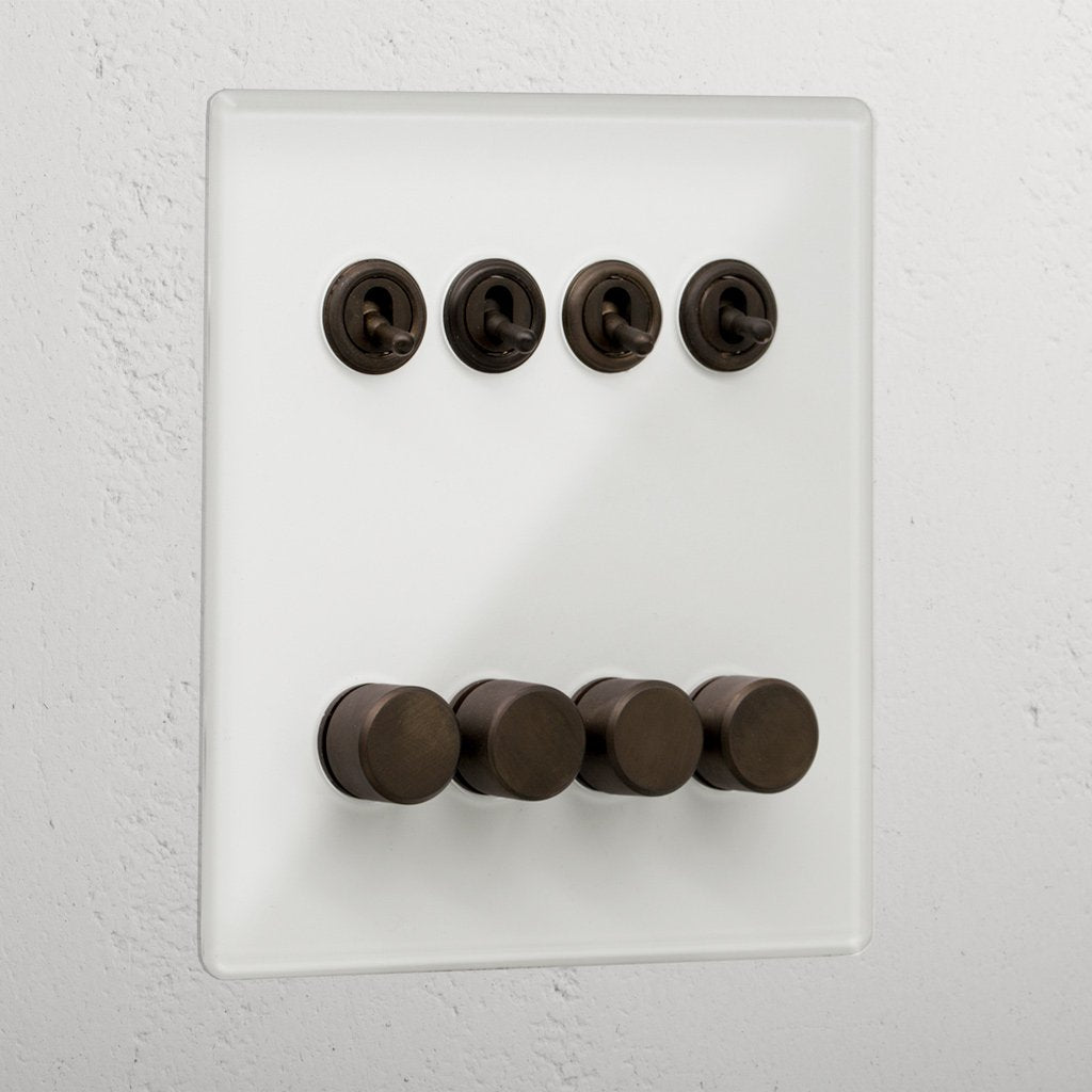 Use four standard toggle switches and four dimmer knobs on one plate with our mixed switch design.