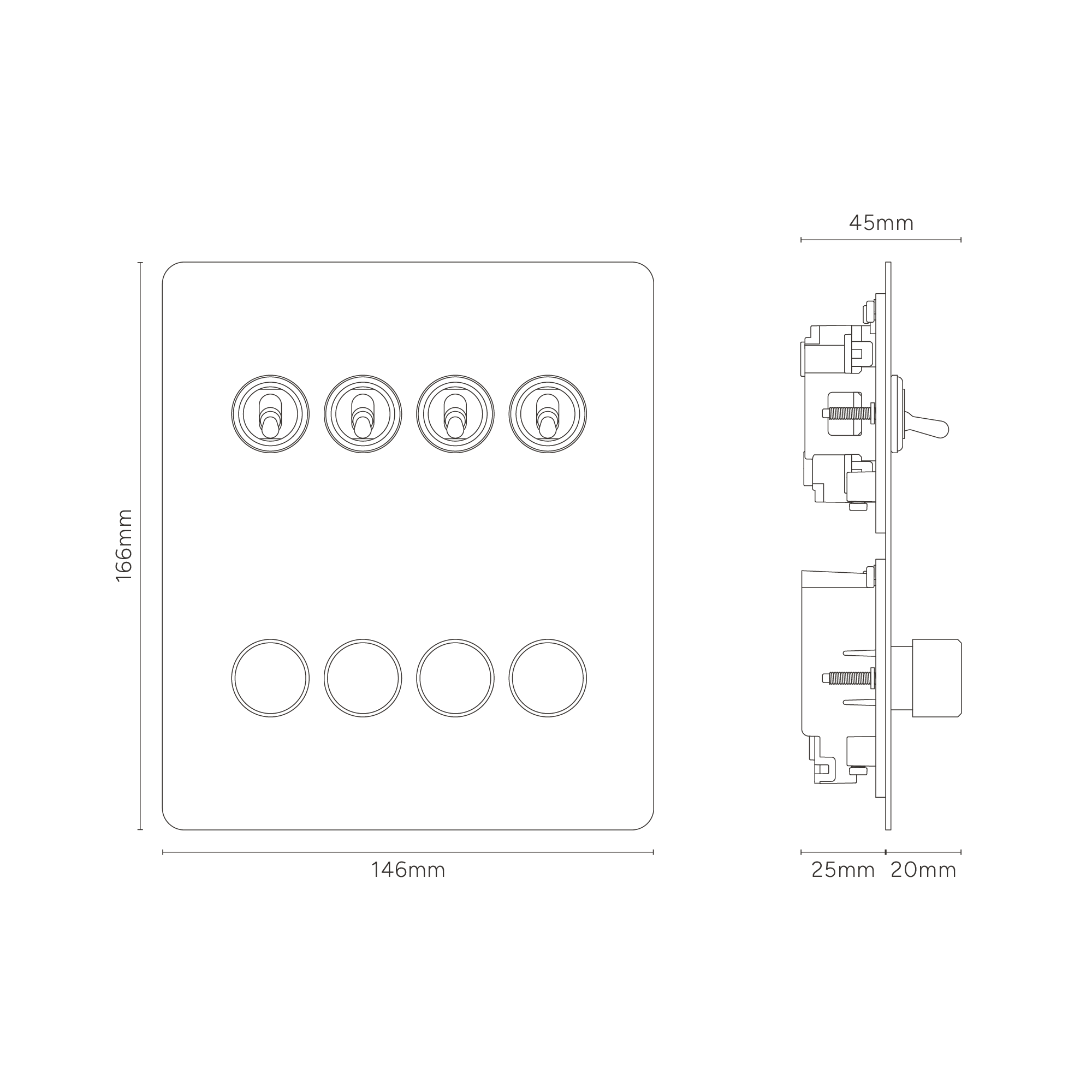 8G 4x Toggle Switch & 4x Dimmer Switch
