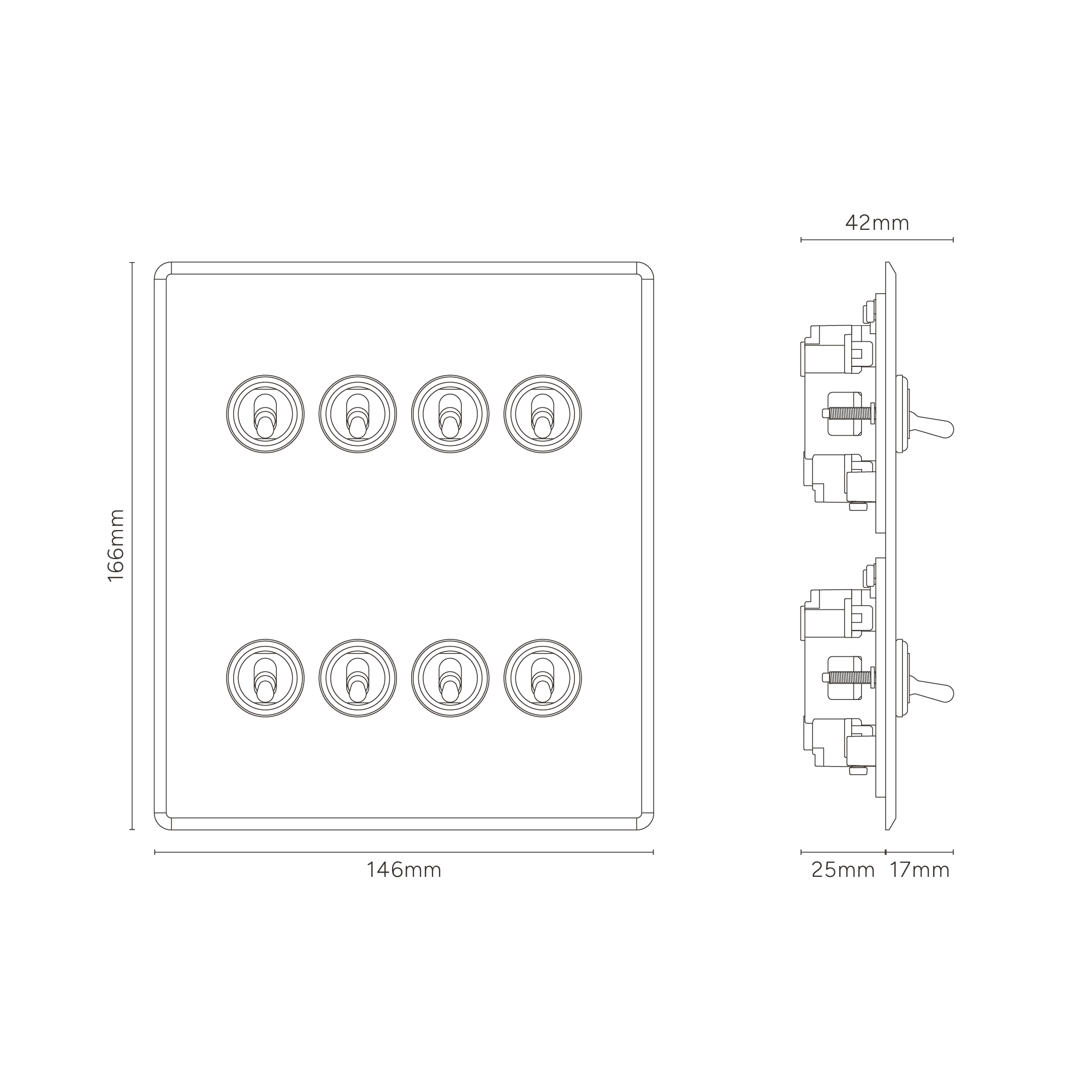 - Dimensions; h166mm x w146mm x d42mm. Toggle height is 17mm