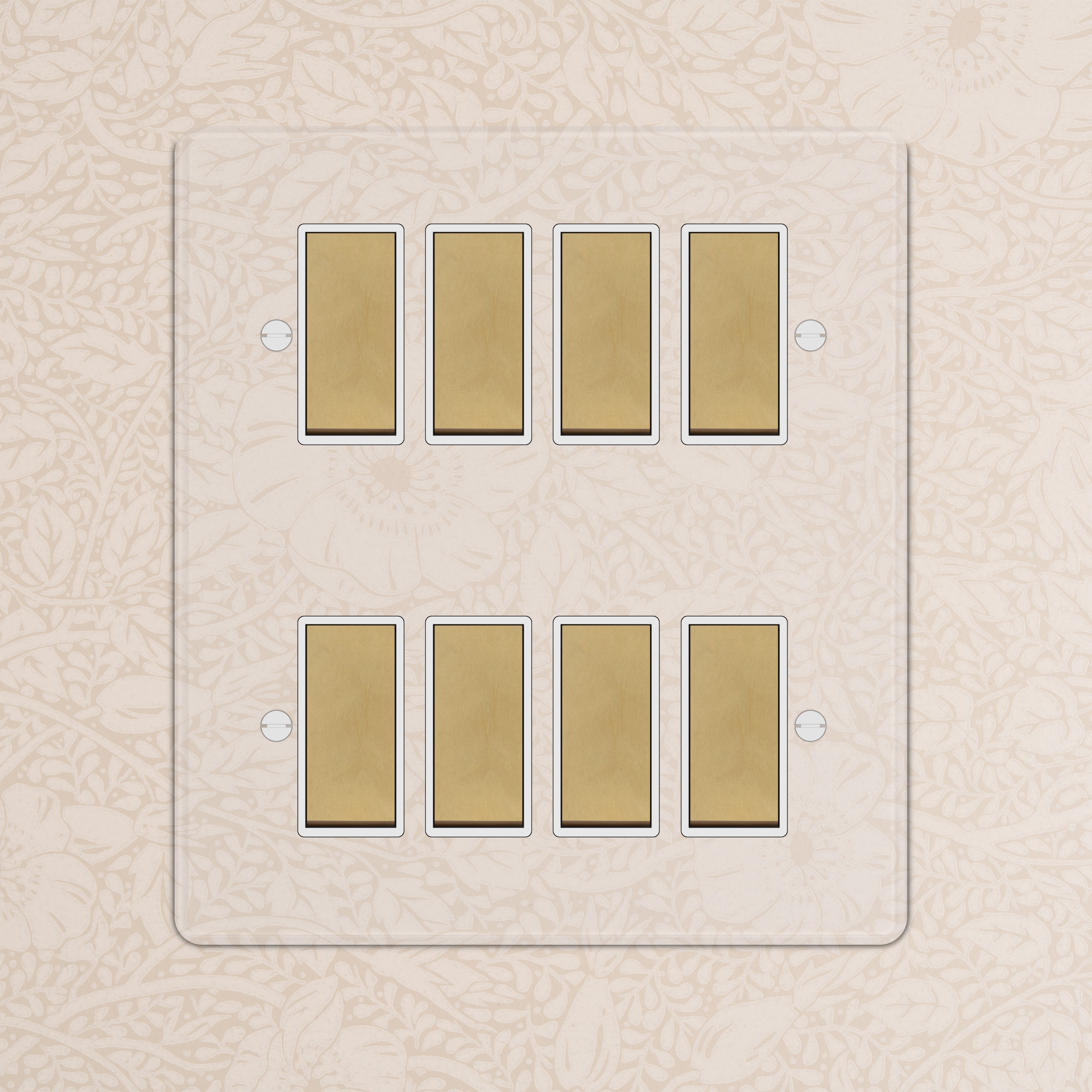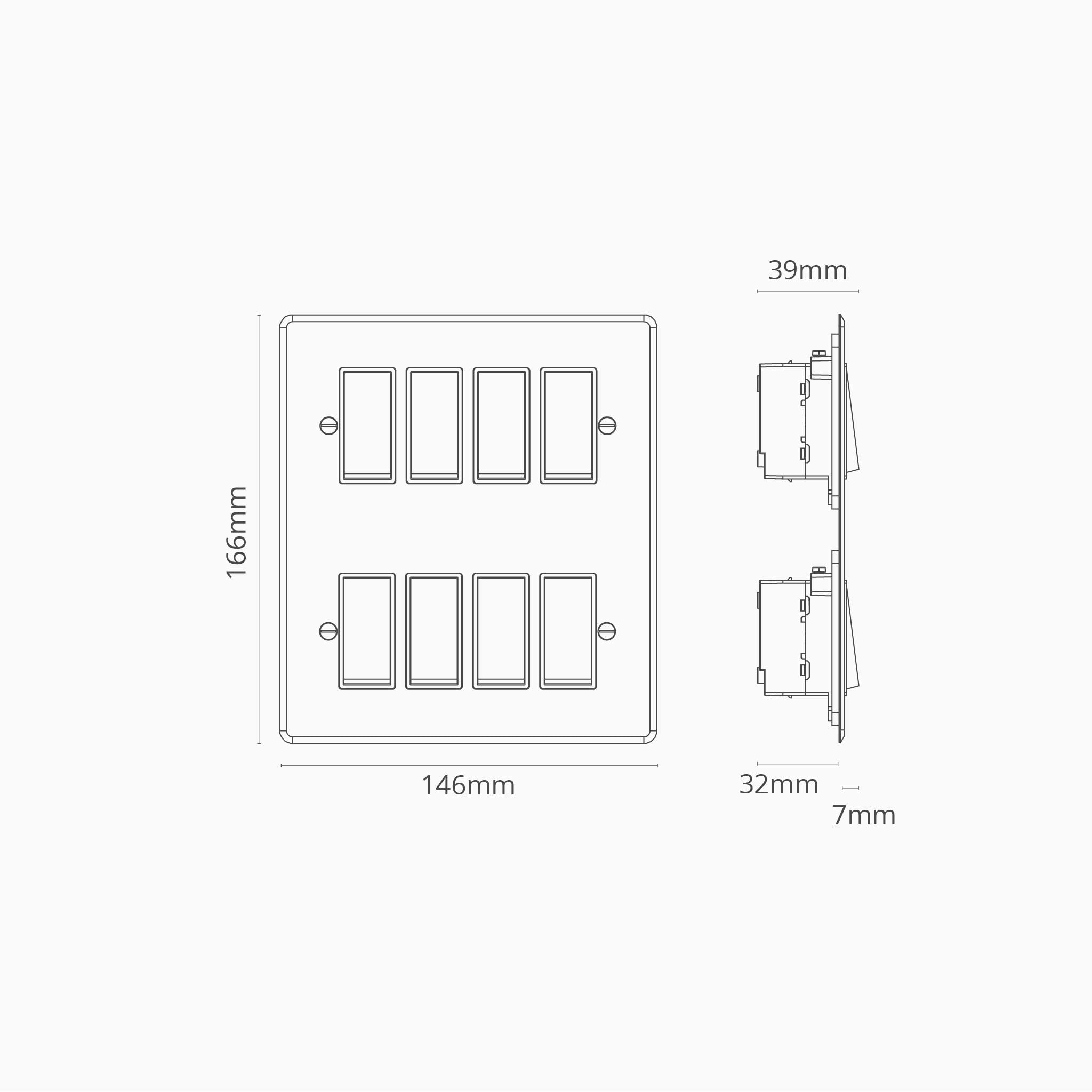 Our 8 gang two-way rocker switch is crafted to be as sleek and timeless as possible in any interior setting.
