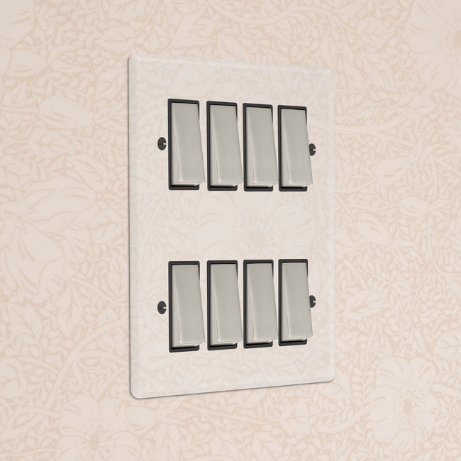 Our 8 gang two-way rocker switch is crafted to be as sleek and timeless as possible in any interior setting.