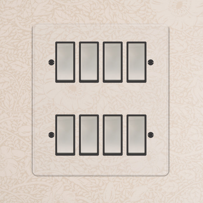 All our switches and sockets must be fitted with back boxes that are at least 35mm in depth. Our rocker switches and our 6G and 8G light switches must be fitted with our bespoke 47mm back boxes to ensure the flush fit of our plates.