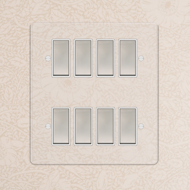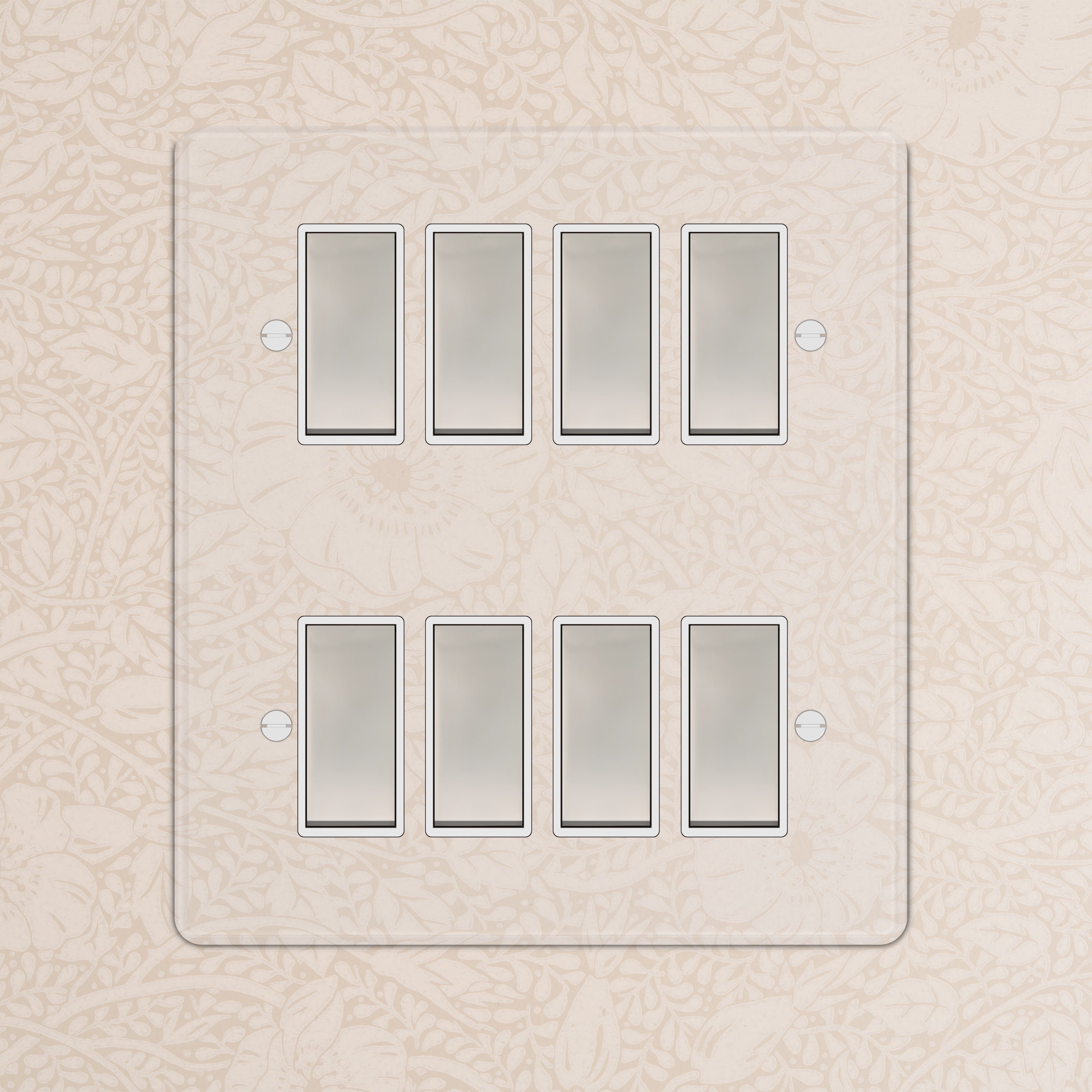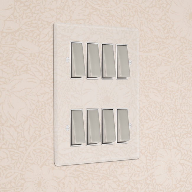 Our 8 gang two-way rocker switch is crafted to be as sleek and timeless as possible in any interior setting.