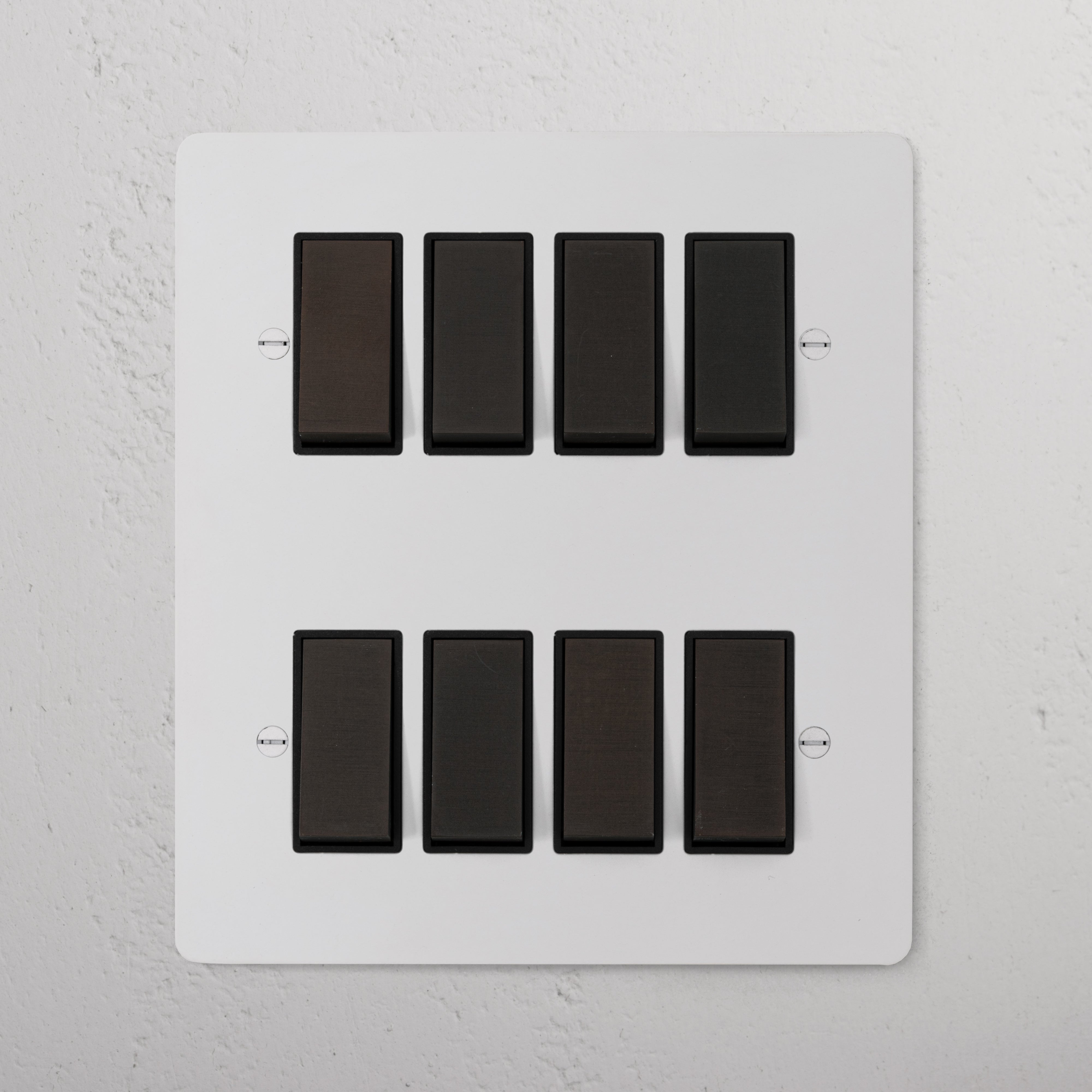 Our 8 gang two-way rocker switch is crafted to be as sleek and timeless as possible in any interior setting.