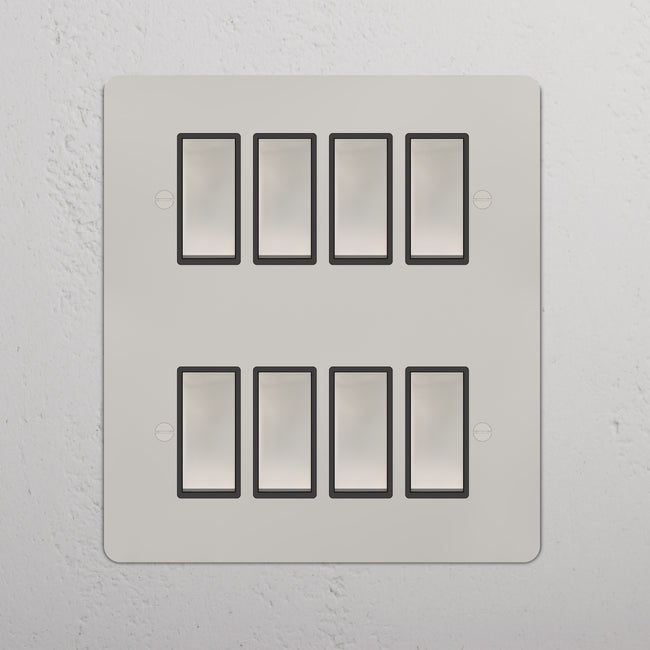 Our 8 gang two-way rocker switch is crafted to be as sleek and timeless as possible in any interior setting.