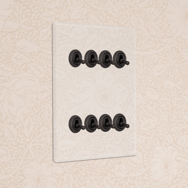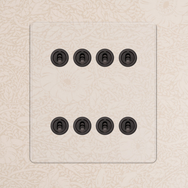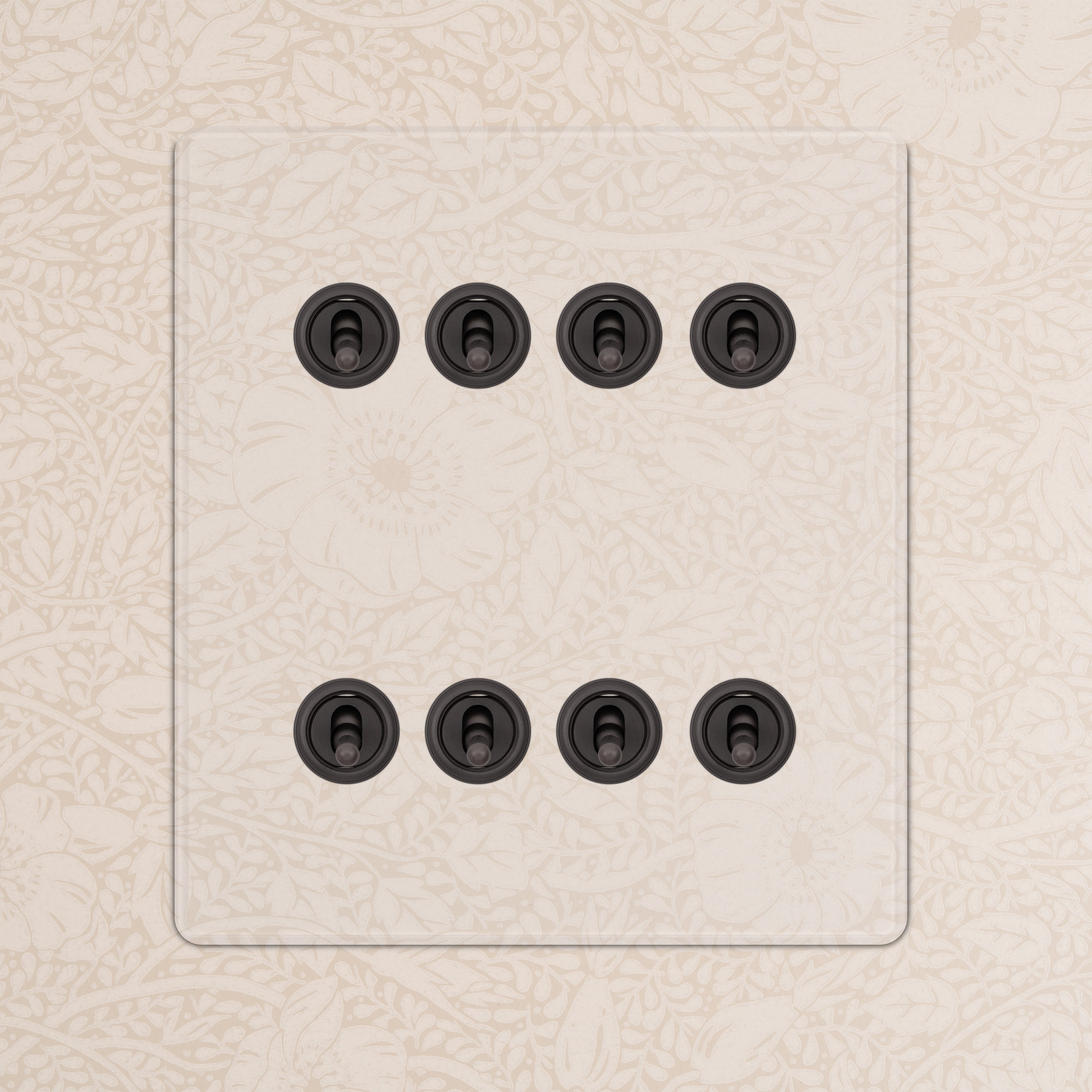 Our 8 gang two-way toggle switch is a modern take on the classic dolly design. We’ve crafted it to be as sleek and timeless as possible in any interior setting.