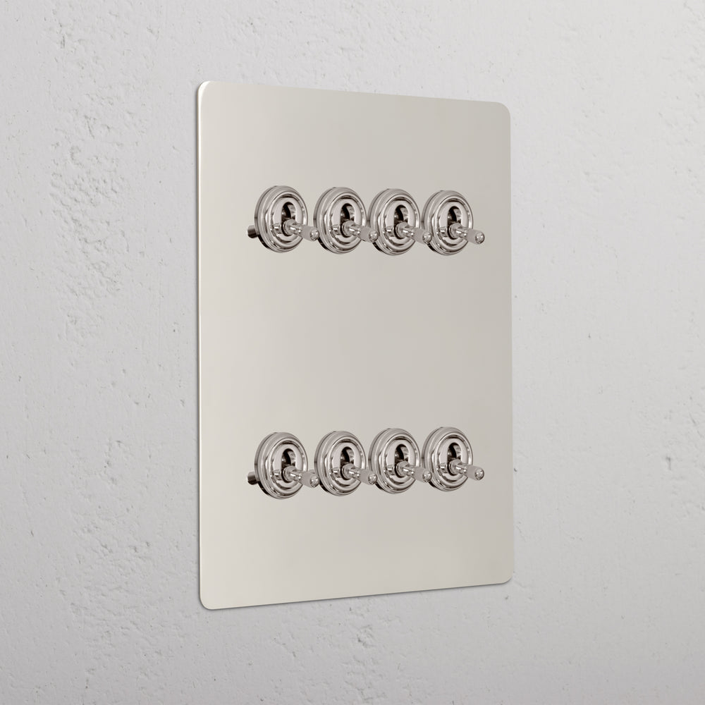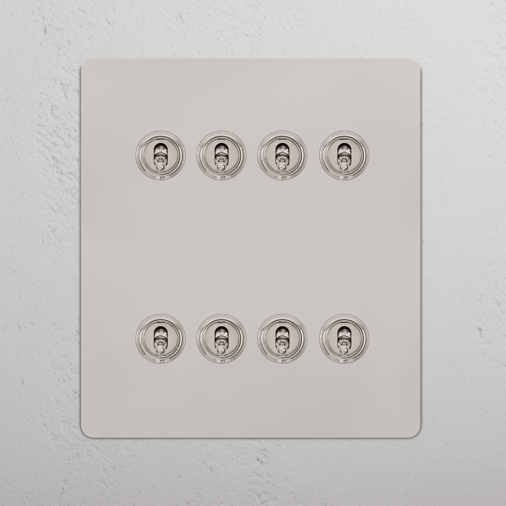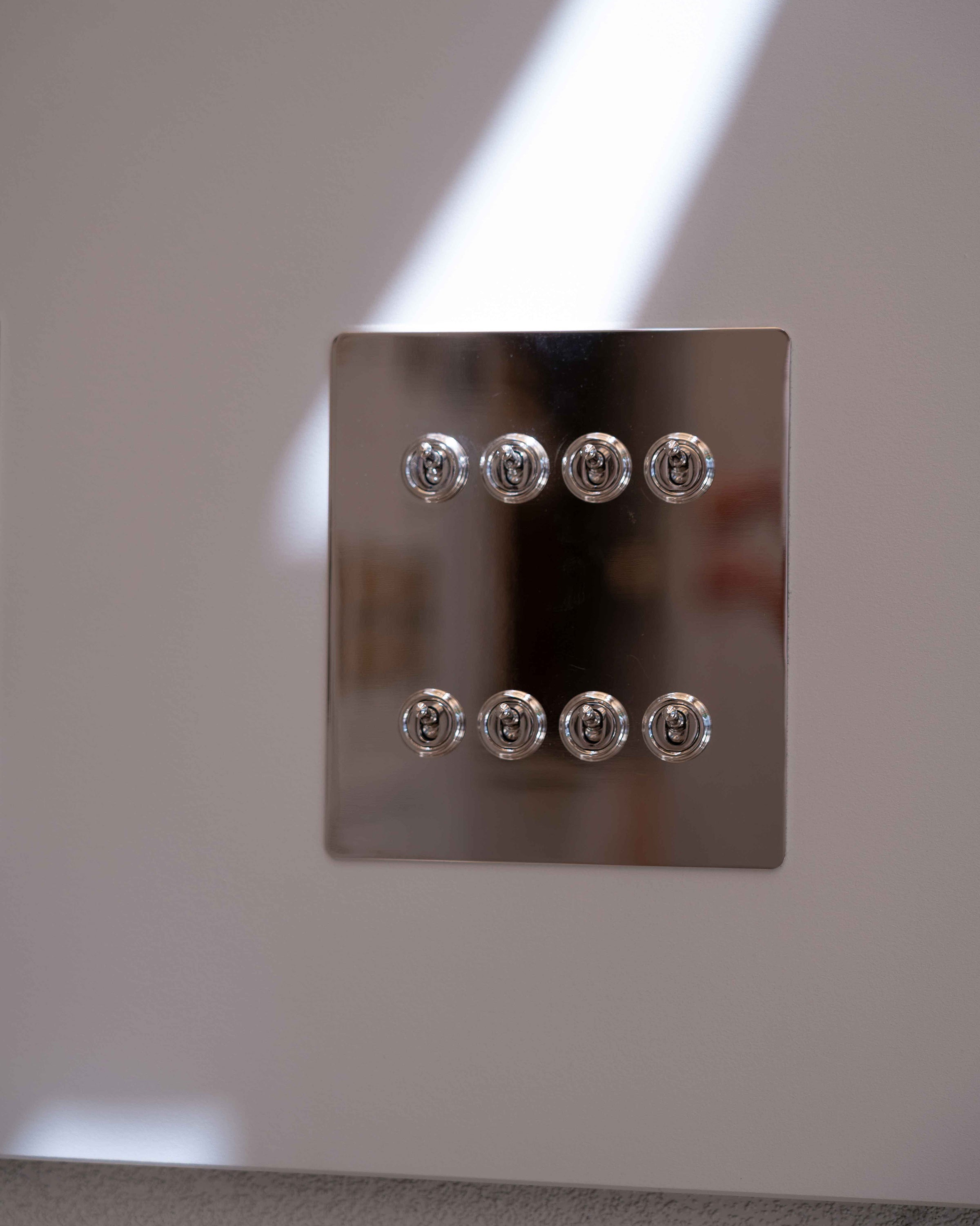 Our 8 gang two-way toggle switch is a modern take on the classic dolly design. We’ve crafted it to be as sleek and timeless as possible in any interior setting.