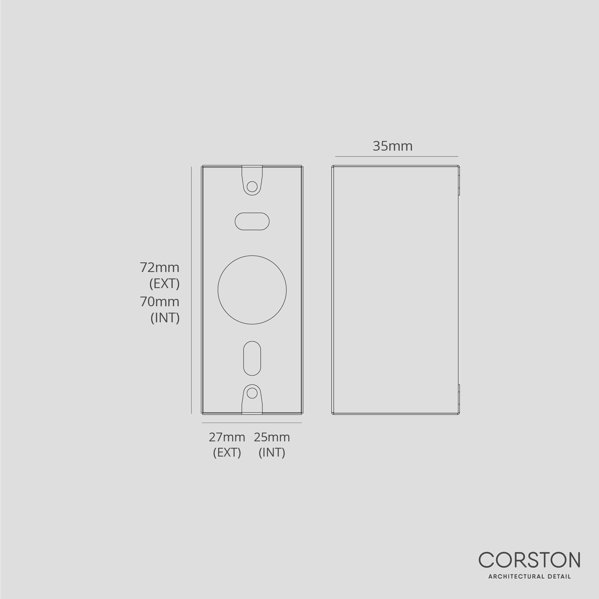 All Corston switches and sockets require a back box with a minimum depth of 35-47mm. It's the only way you'll achieve a flush finish. Our 6G and 8G switches must be used with a Corston double metal back box. because of the bespoke size.