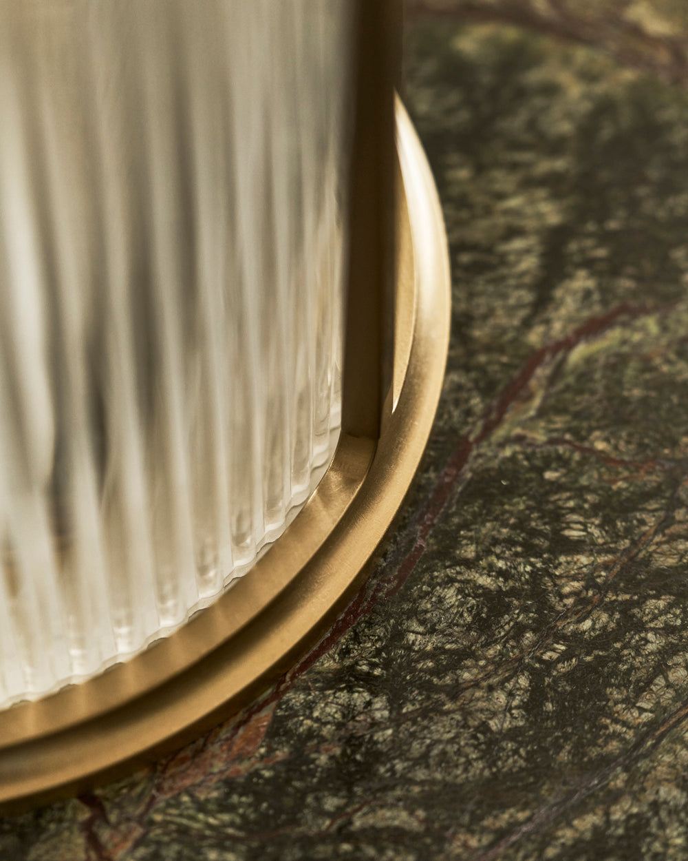 The solid brass frame is inspired by our Bank wall lights, and the fluted glass inner matches our other fluted glass shades, so it’s simple to layer with our lighting collection.