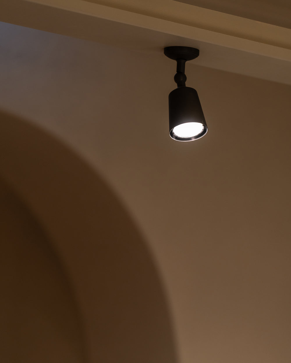 Our Baylis single spotlight has a refined base and discreet screws. It’ll sit neatly on any ceiling or wall.