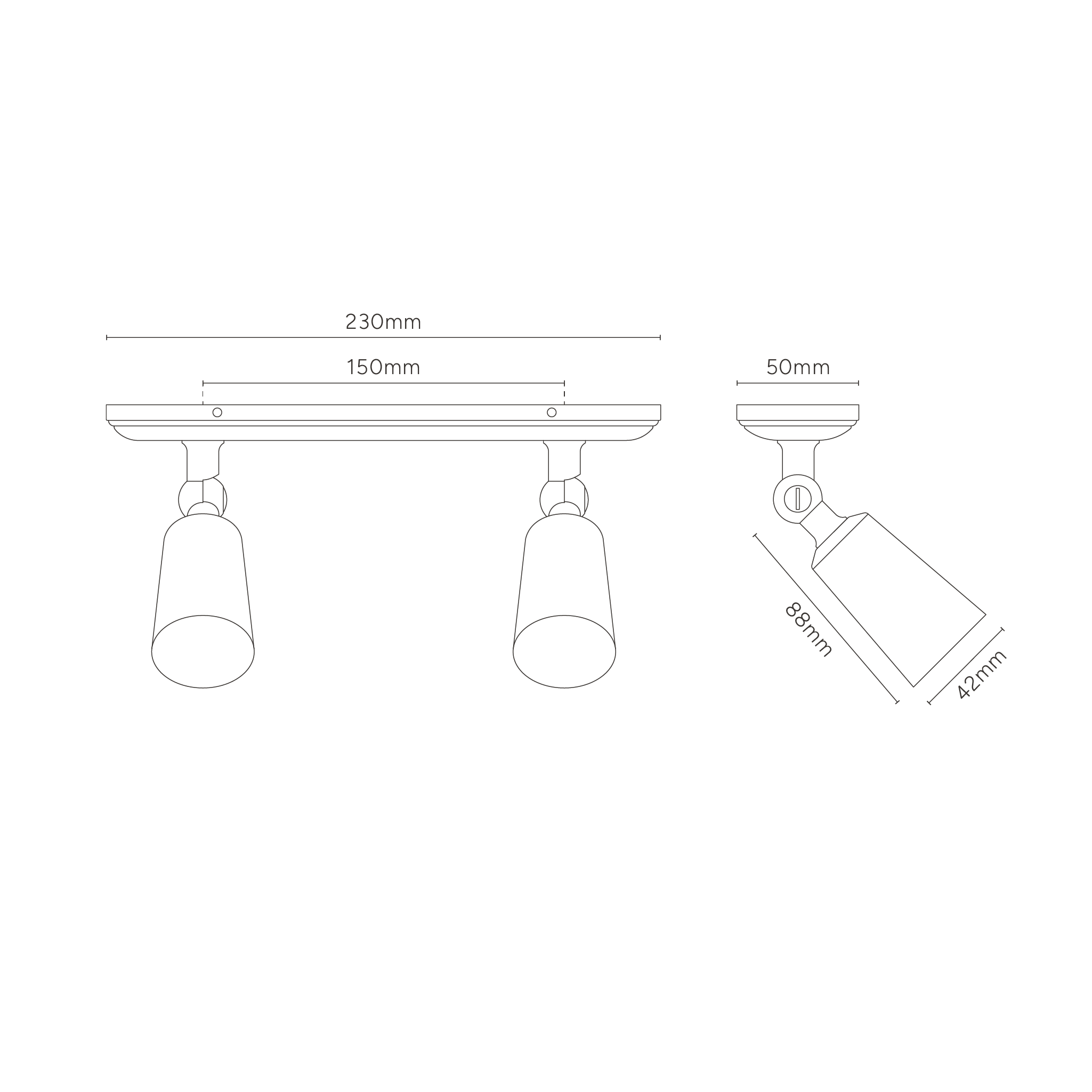 Our Baylis double spotlight has a refined base and discreet screws. It’ll sit neatly on any ceiling or wall.