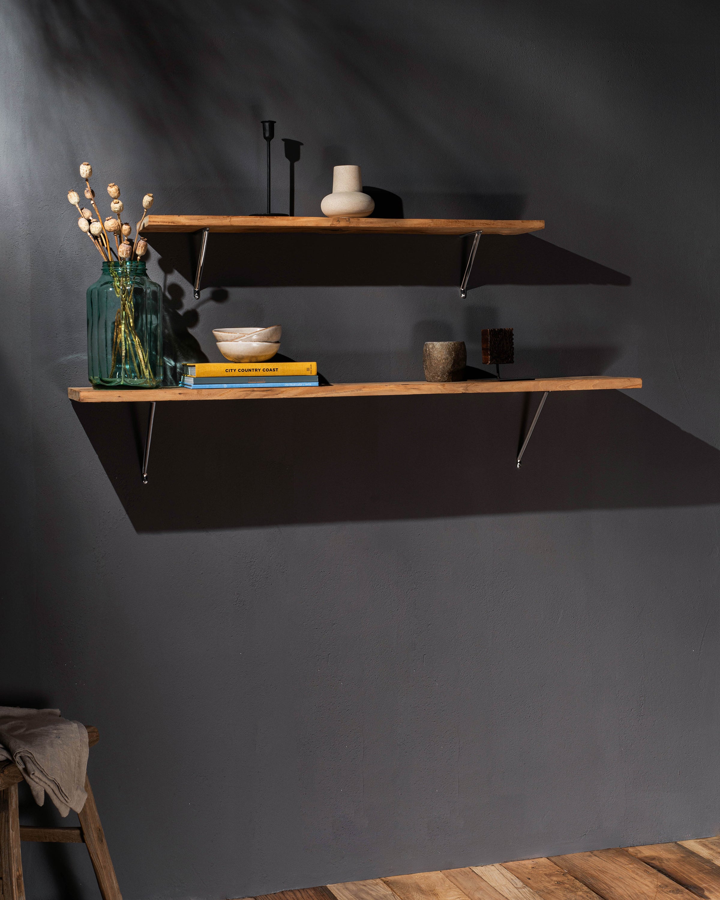 Our Brixton shelf bracket is cast from a single piece of sturdy solid brass. It’ll sit flush against your wall and comfortably hold 40kg.
