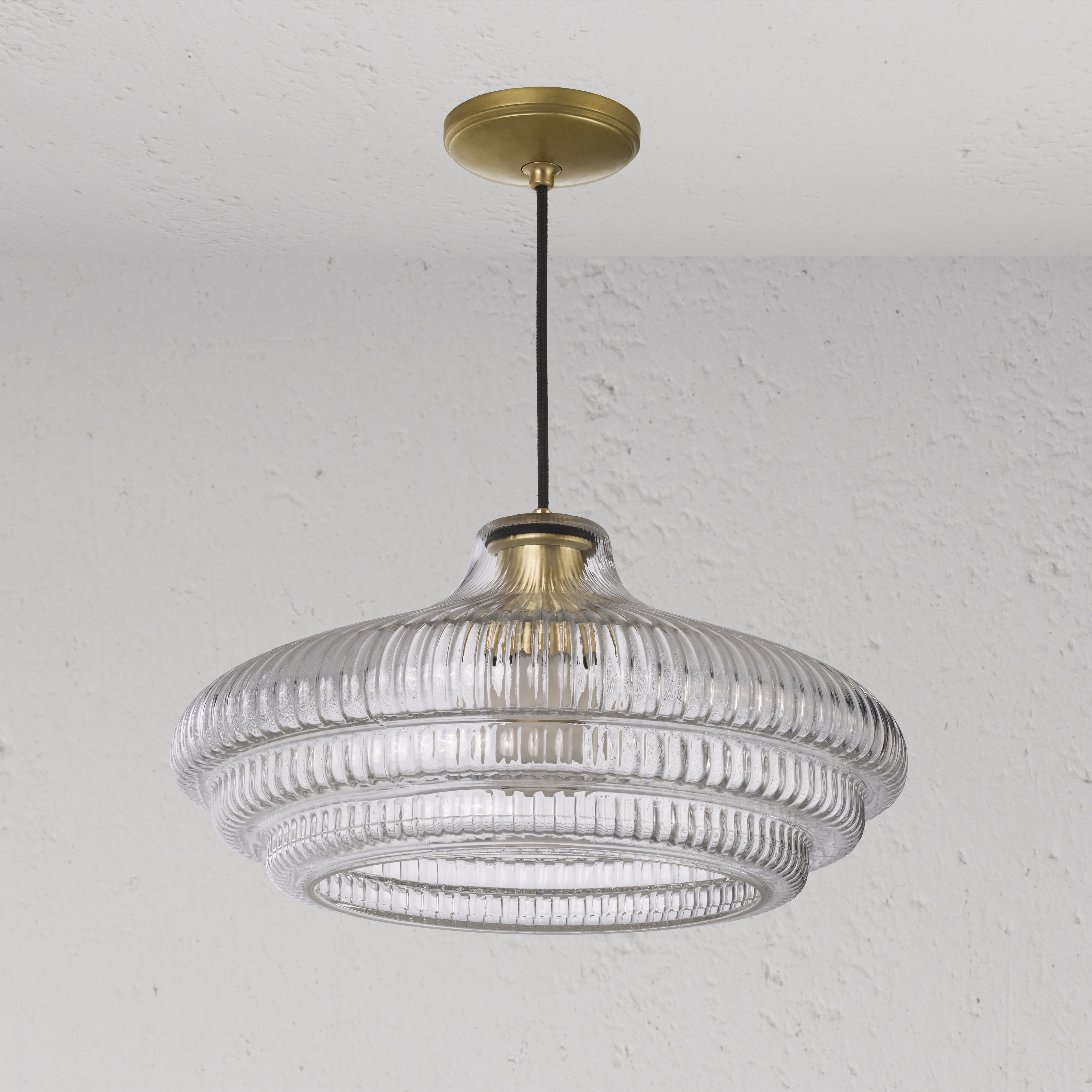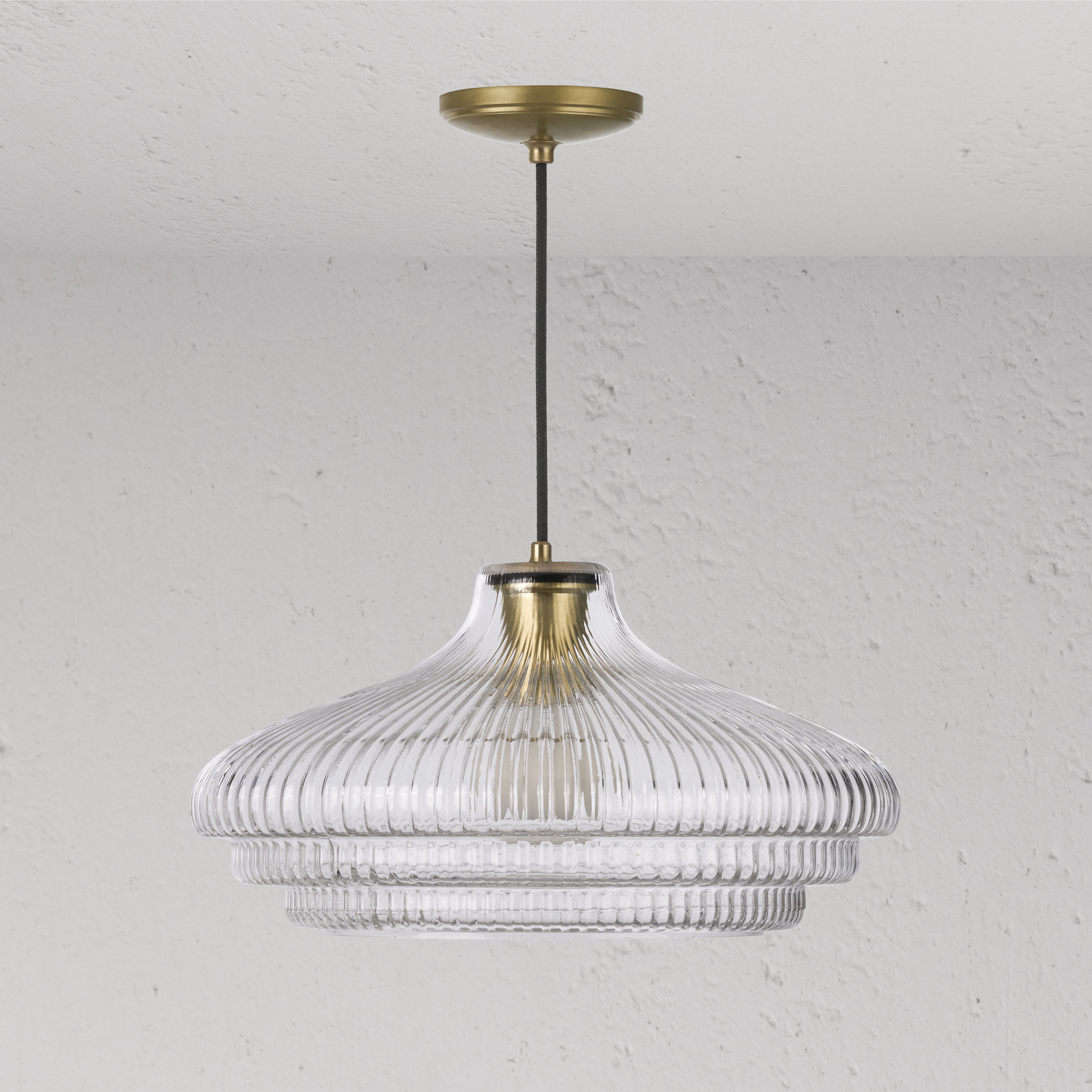Our Brookfield pendant has an elegantly curved, three-tiered shade and a solid brass bulb holder. It’ll make a subtle statement without outshining other design features in your space.
