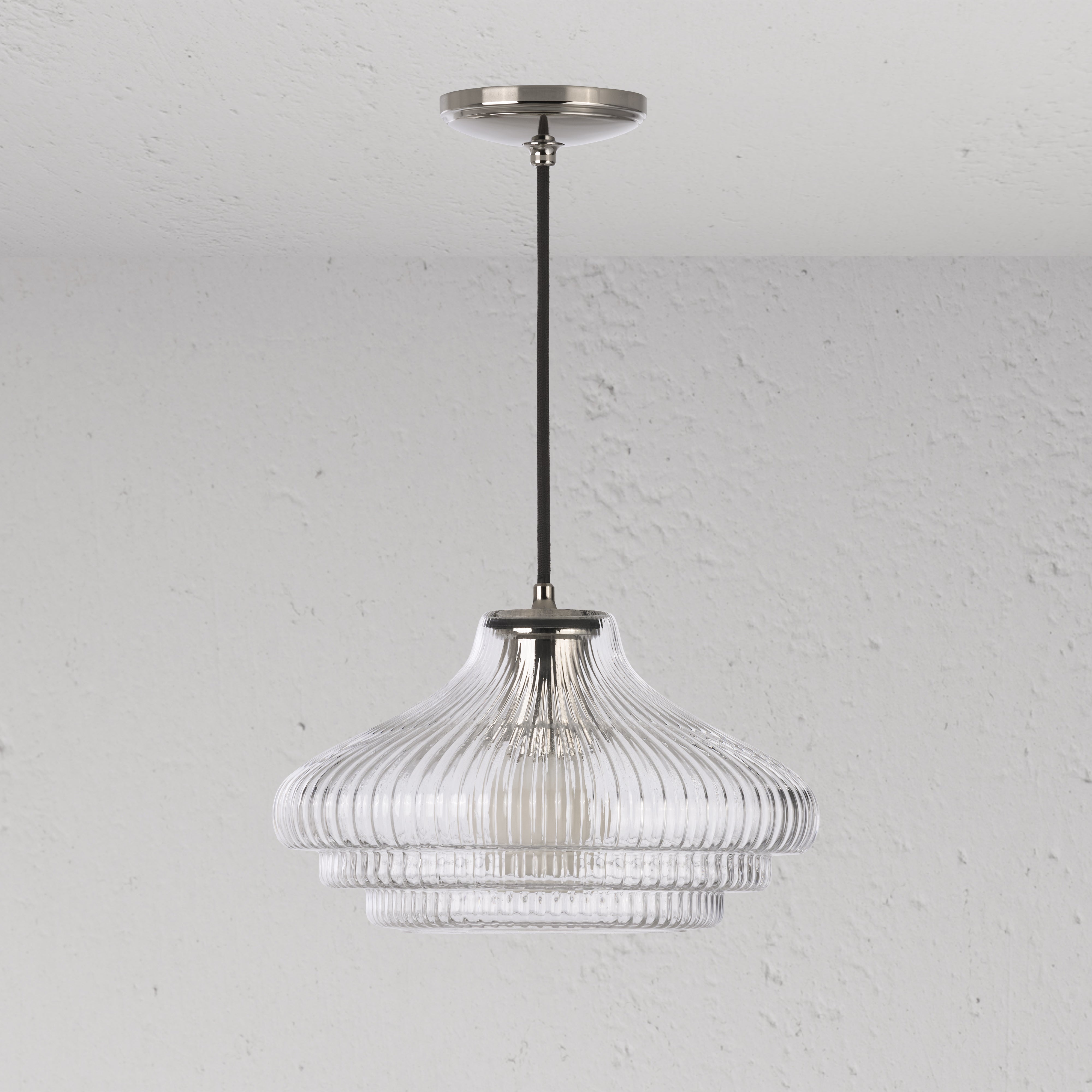 Our Brookfield pendant has an elegantly curved, three-tiered shade and a solid brass bulb holder. It’ll make a subtle statement without outshining other design features in your space.