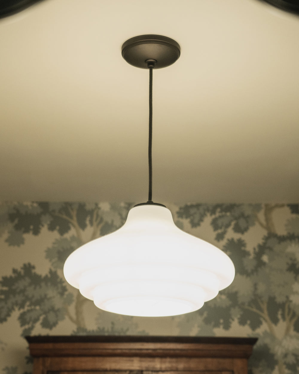 The milky white opal glass is glossier than fine porcelain, but the light it emits is just as warm, atmospheric and free from glare.