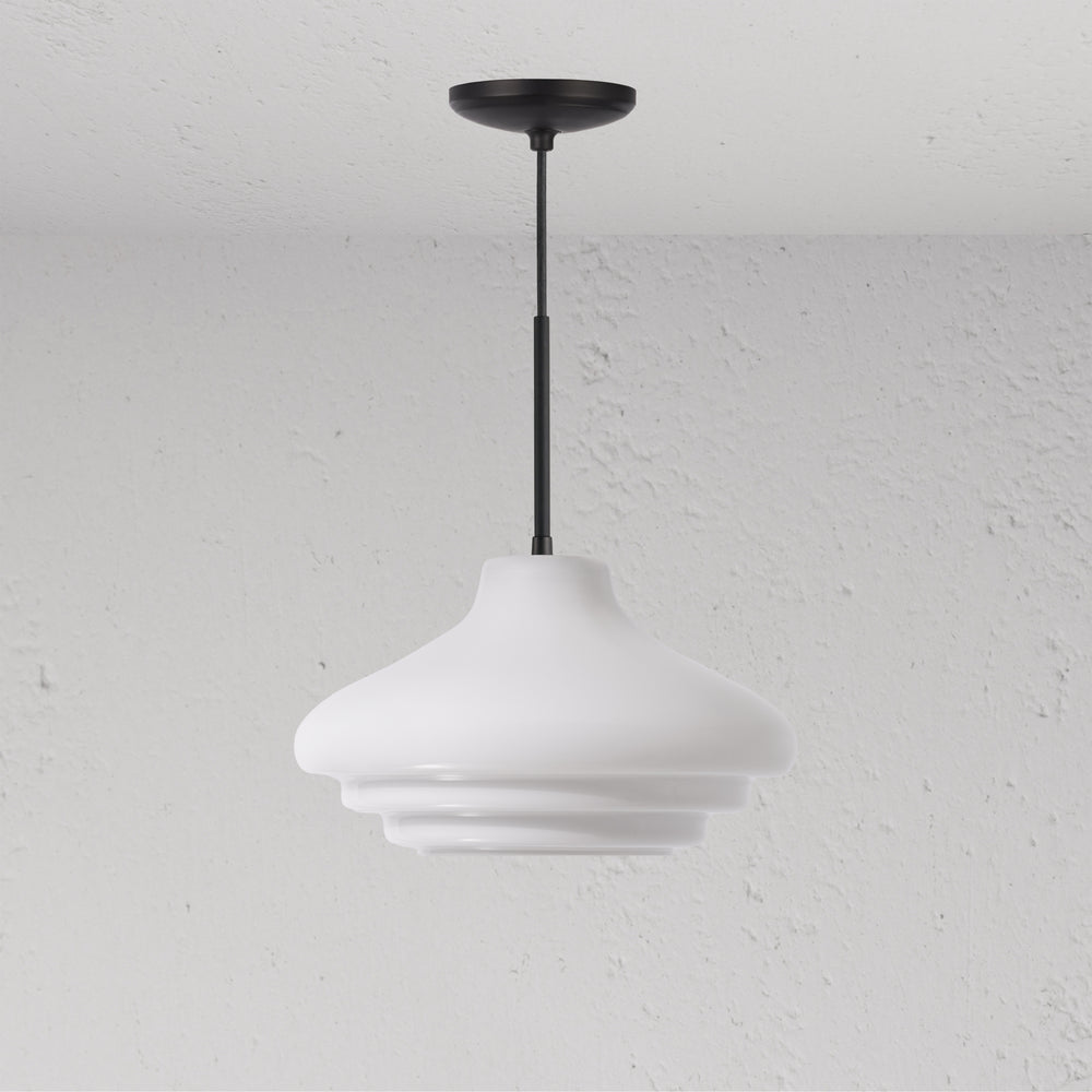 Our Brookfield pendant has an elegantly curved, three-tiered shade and a solid brass bulb holder. It’ll make a subtle statement without outshining other design features in your space.