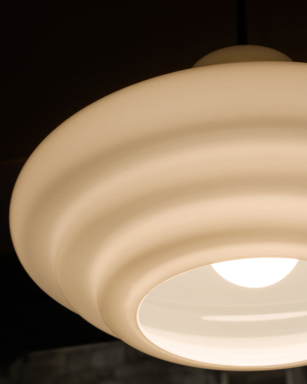 The milky white opal glass is glossier than fine porcelain, but the light it emits is just as warm, atmospheric and free from glare.