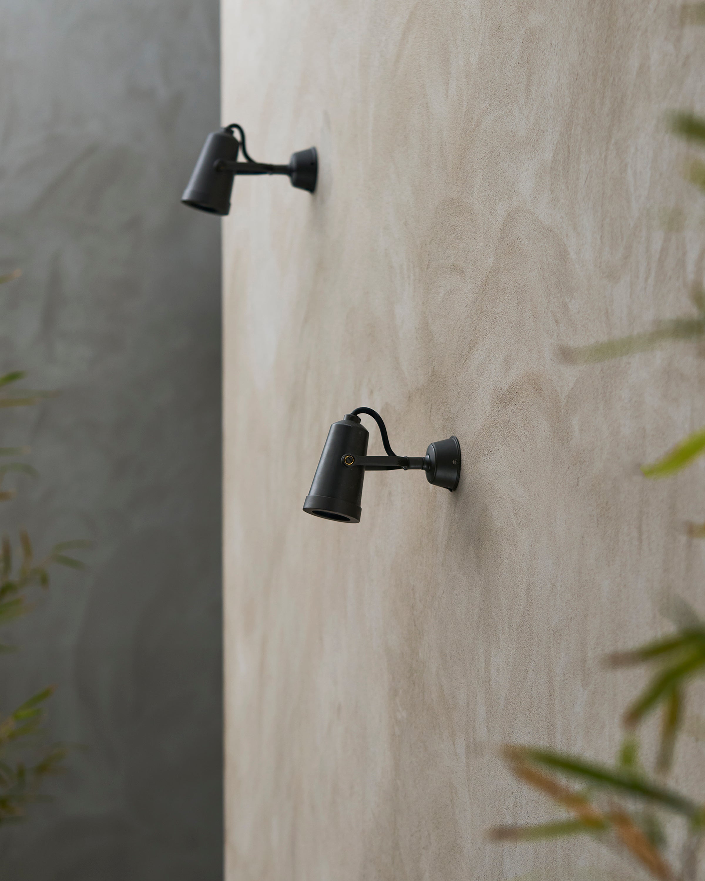 The wall-mounted spotlight is designed to be directed downwards to illuminate garden paths, flowerbeds and the like.