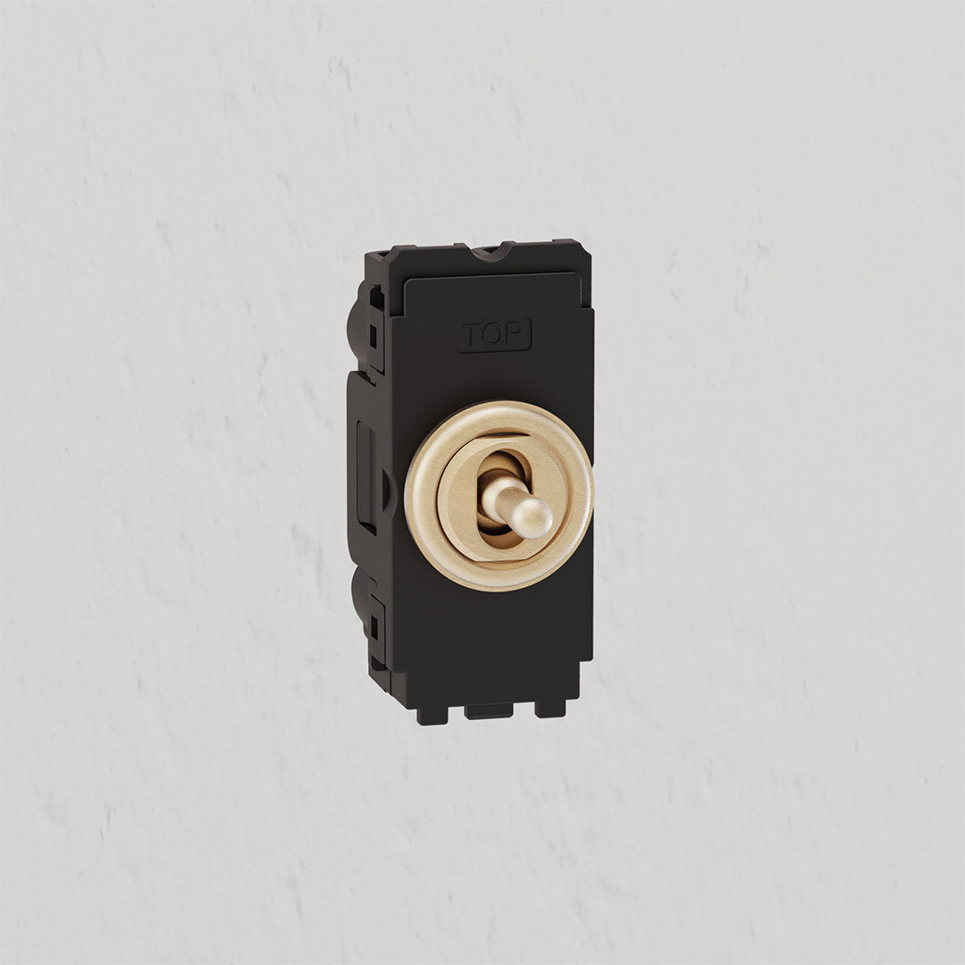 This antique brass centre retractive toggle switch works with our antique brass, clear and paintable switch plates.