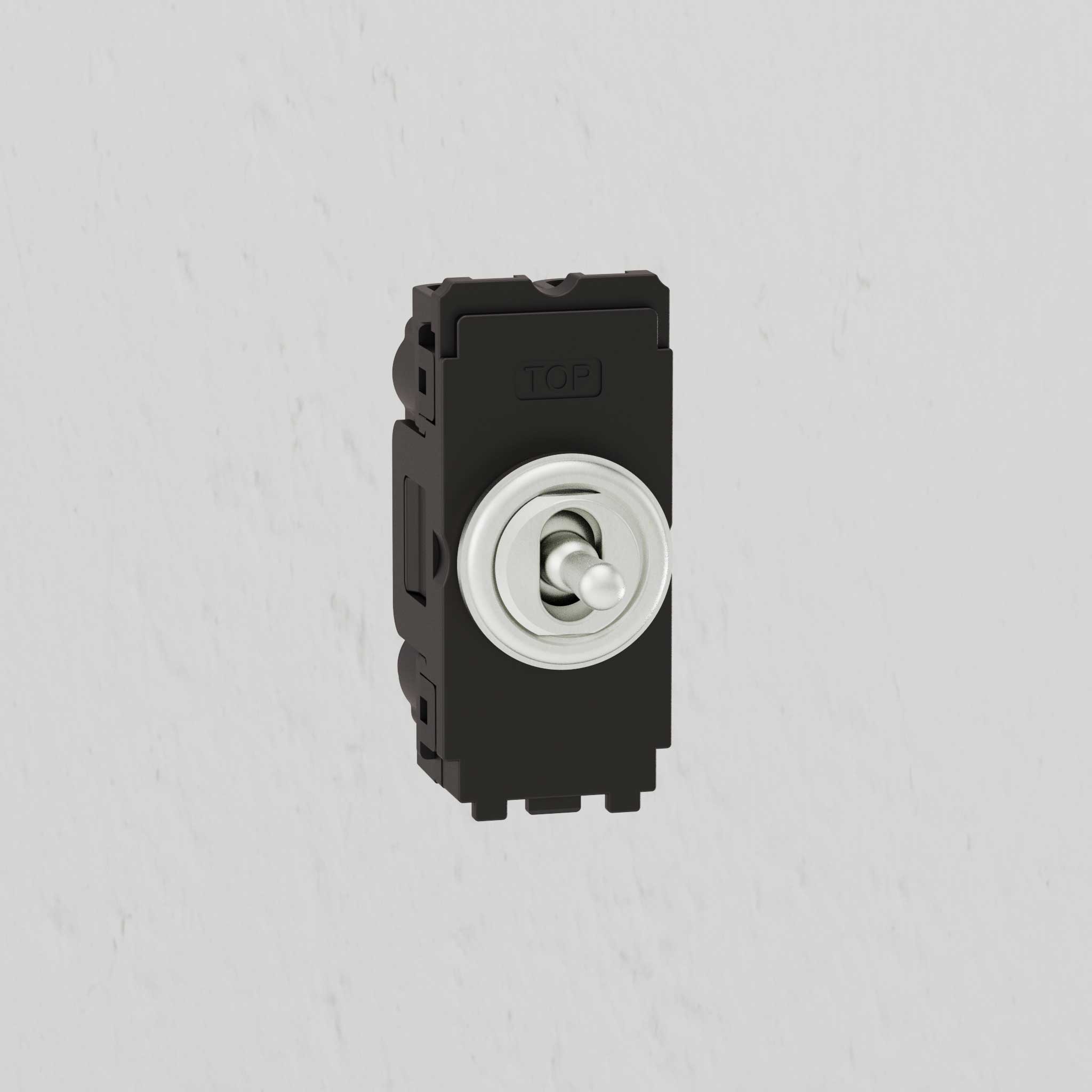 It flicks back to the centre ‘off’ position when you let go. You can use it for things like electronic blinds and to dim lights (with our standard in-line dimmer module).