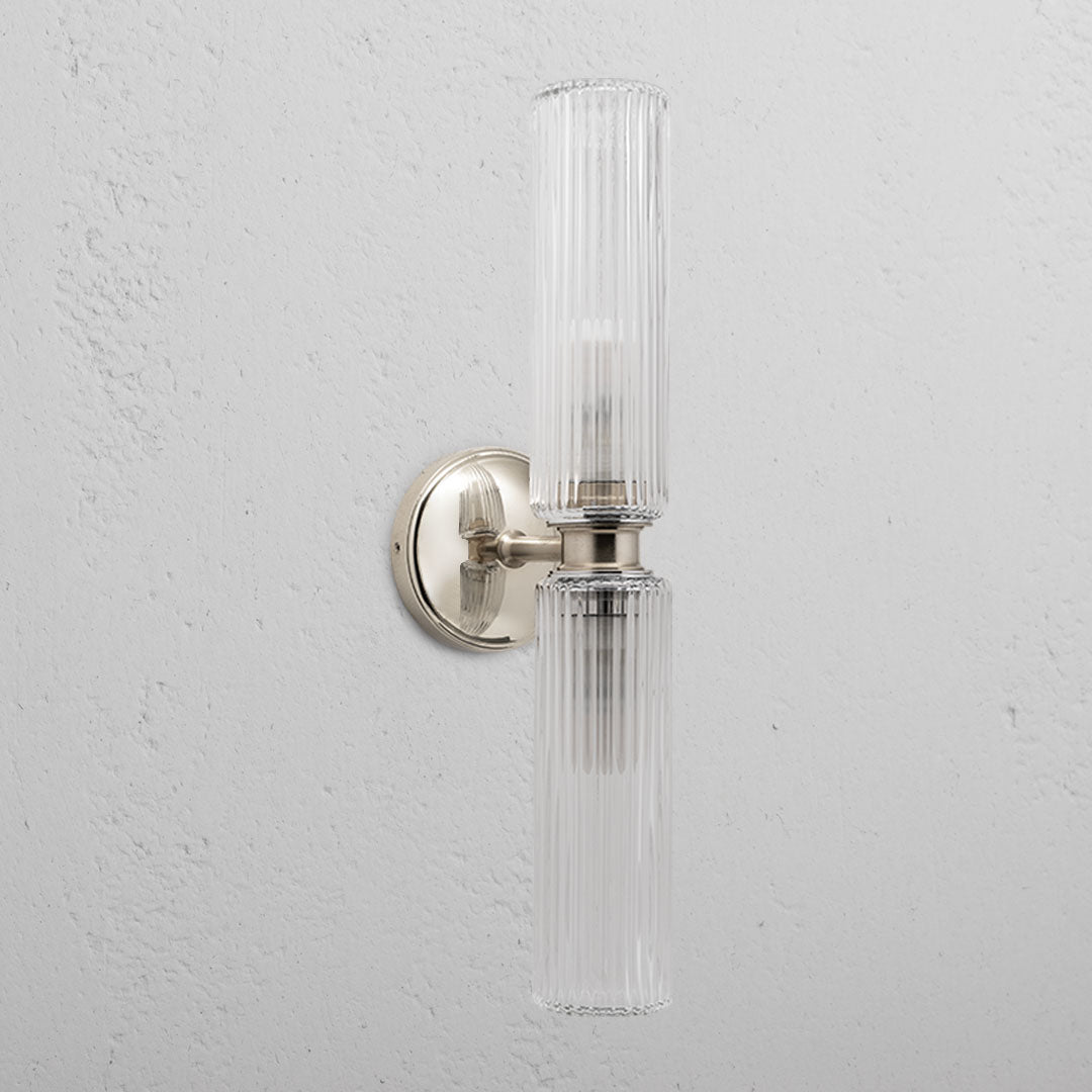 The dual design of our Claremont medium wall light provides both up and down light from two fluted glass shades. Like the small single shade version, the streamlined silhouette looks great in both classic and contemporary homes.