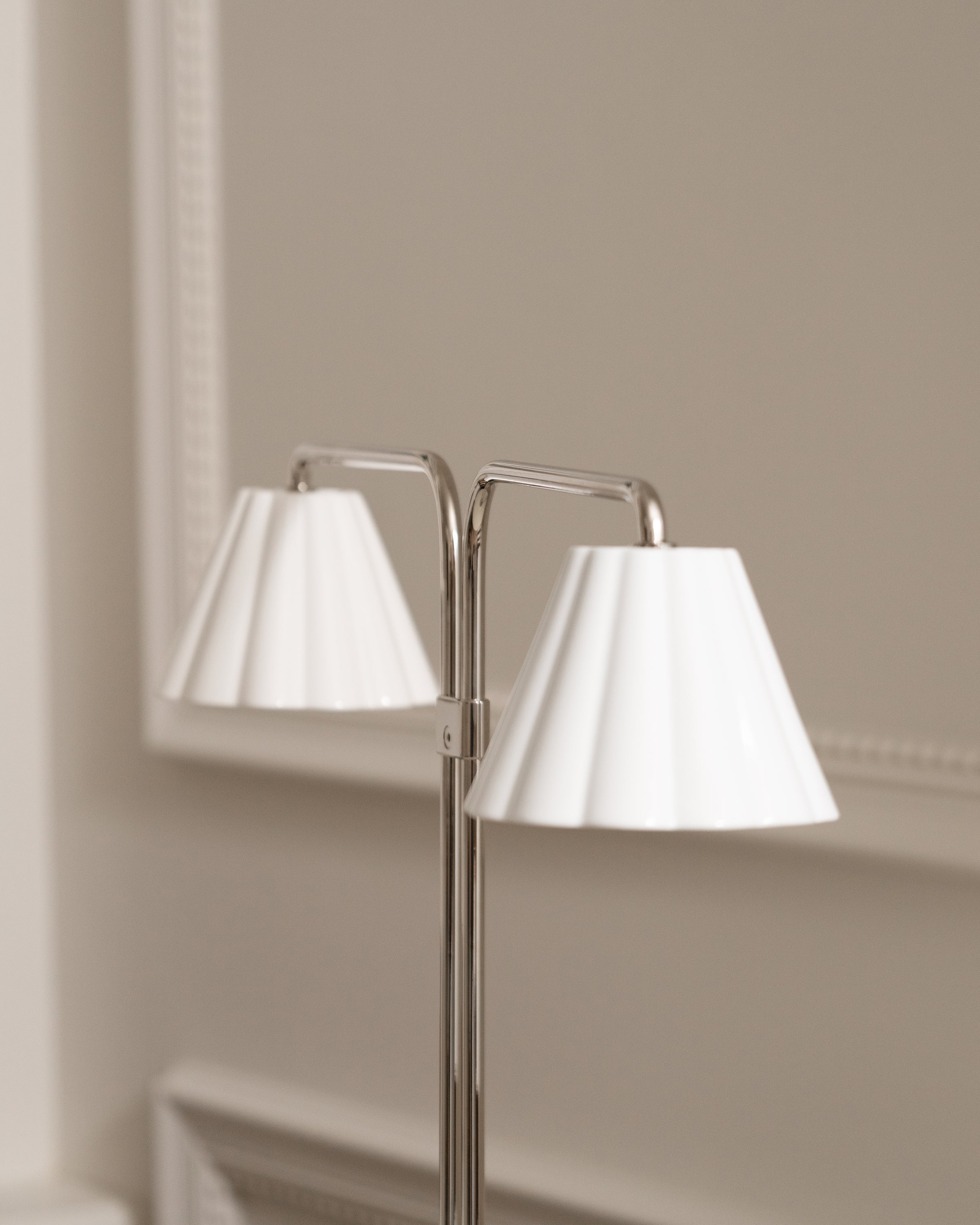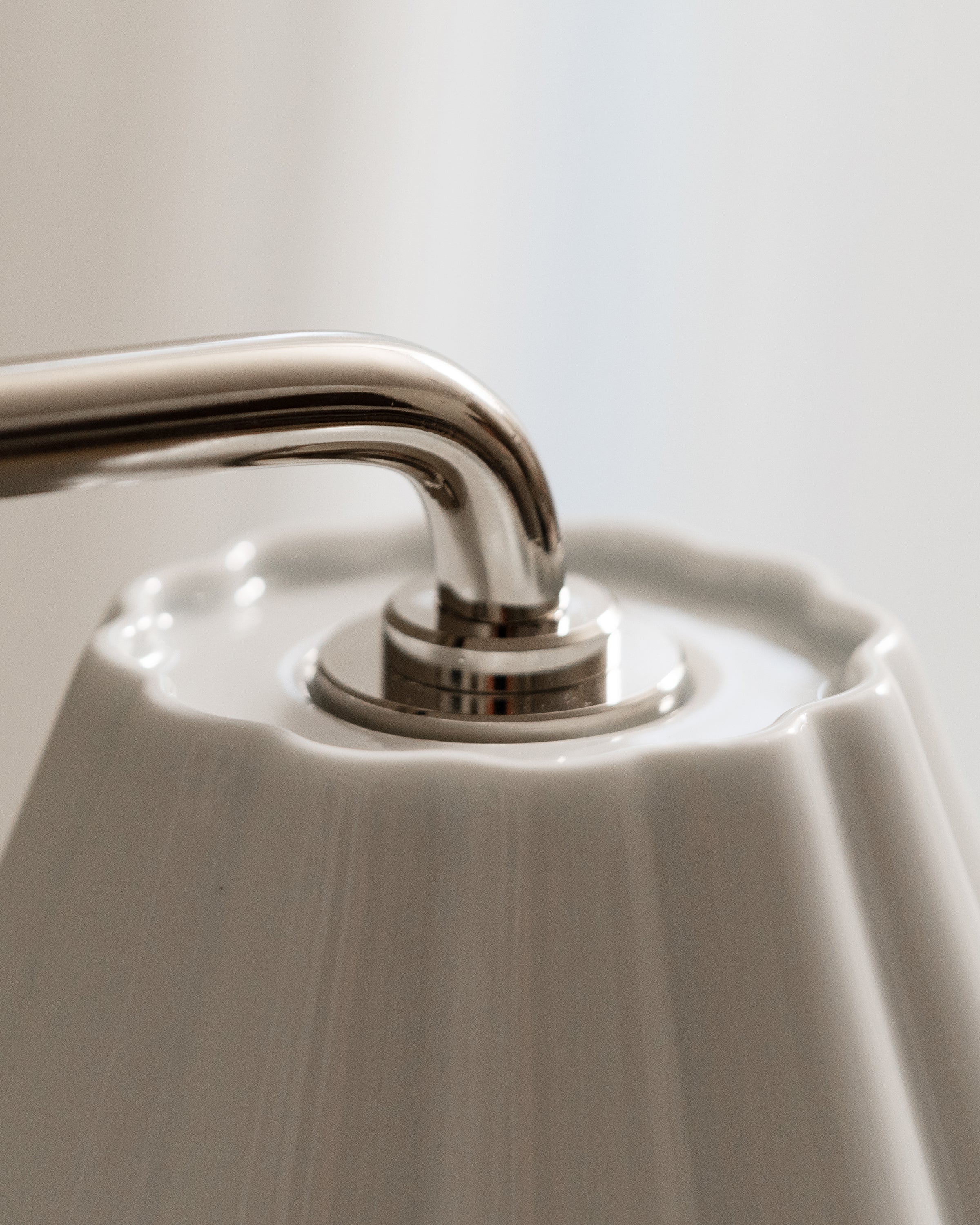 The gently scalloped fine porcelain shades provide a warm, atmospheric glow with absolutely no glare. We’ve opted for a very subtle scallop that won’t go out of style.