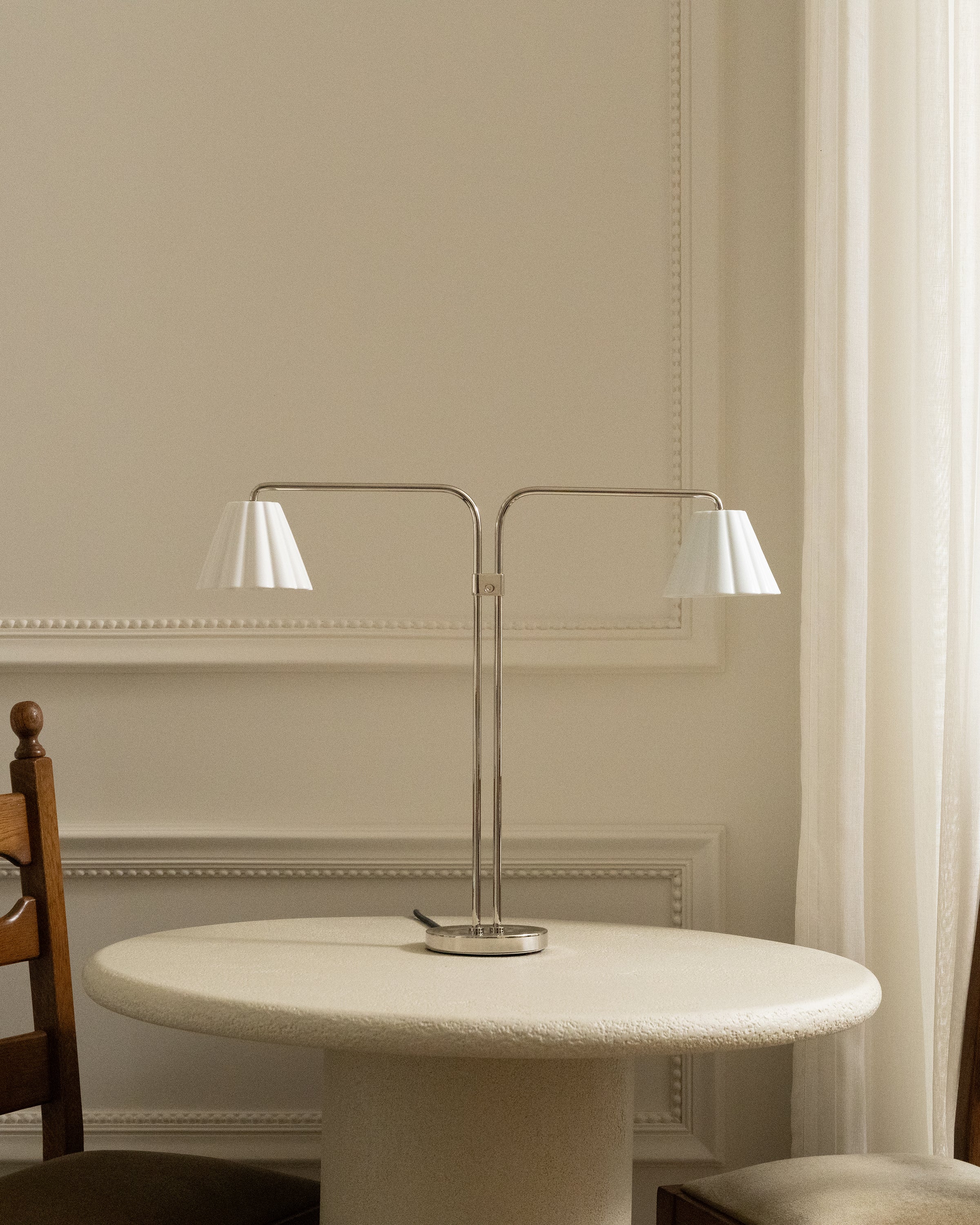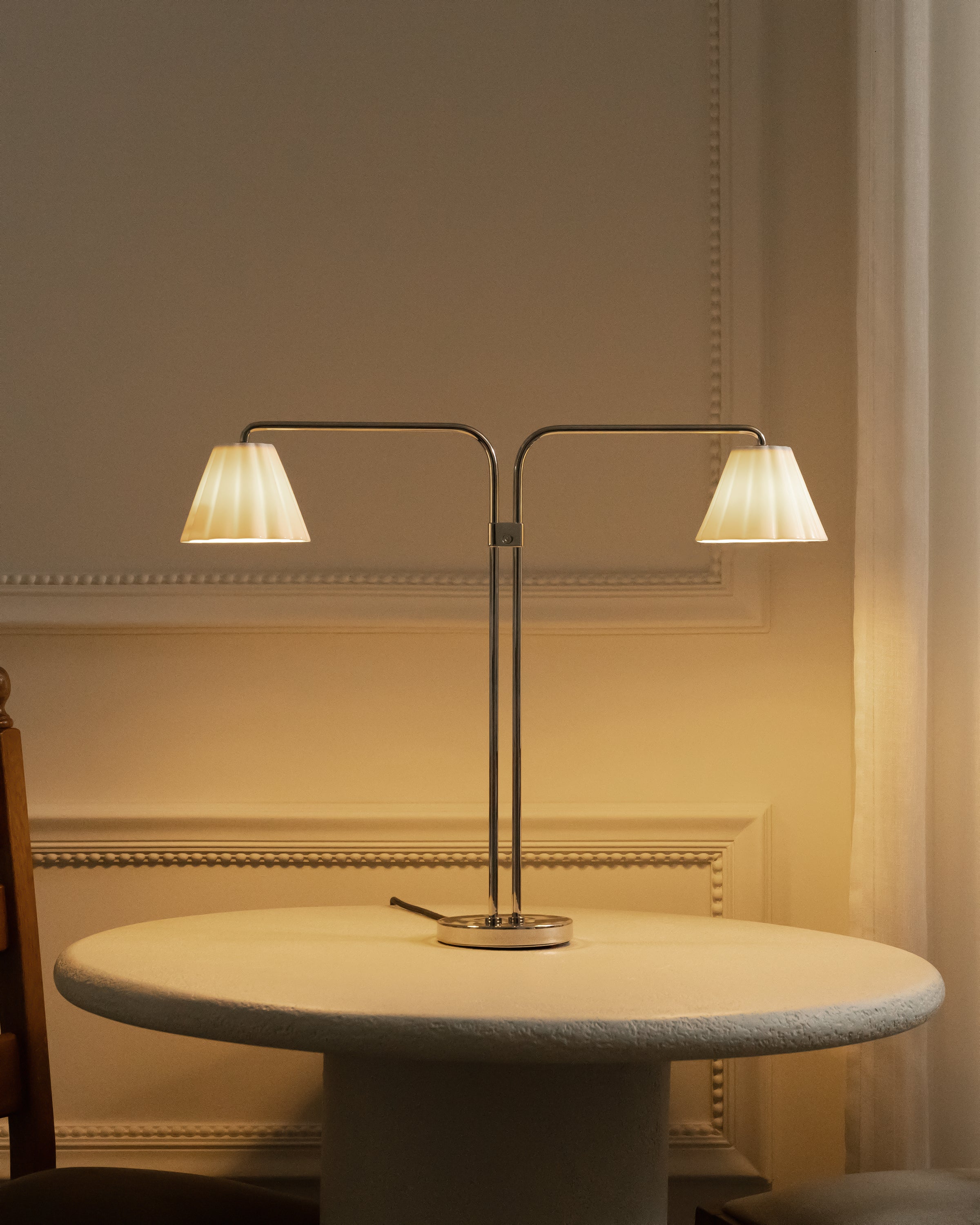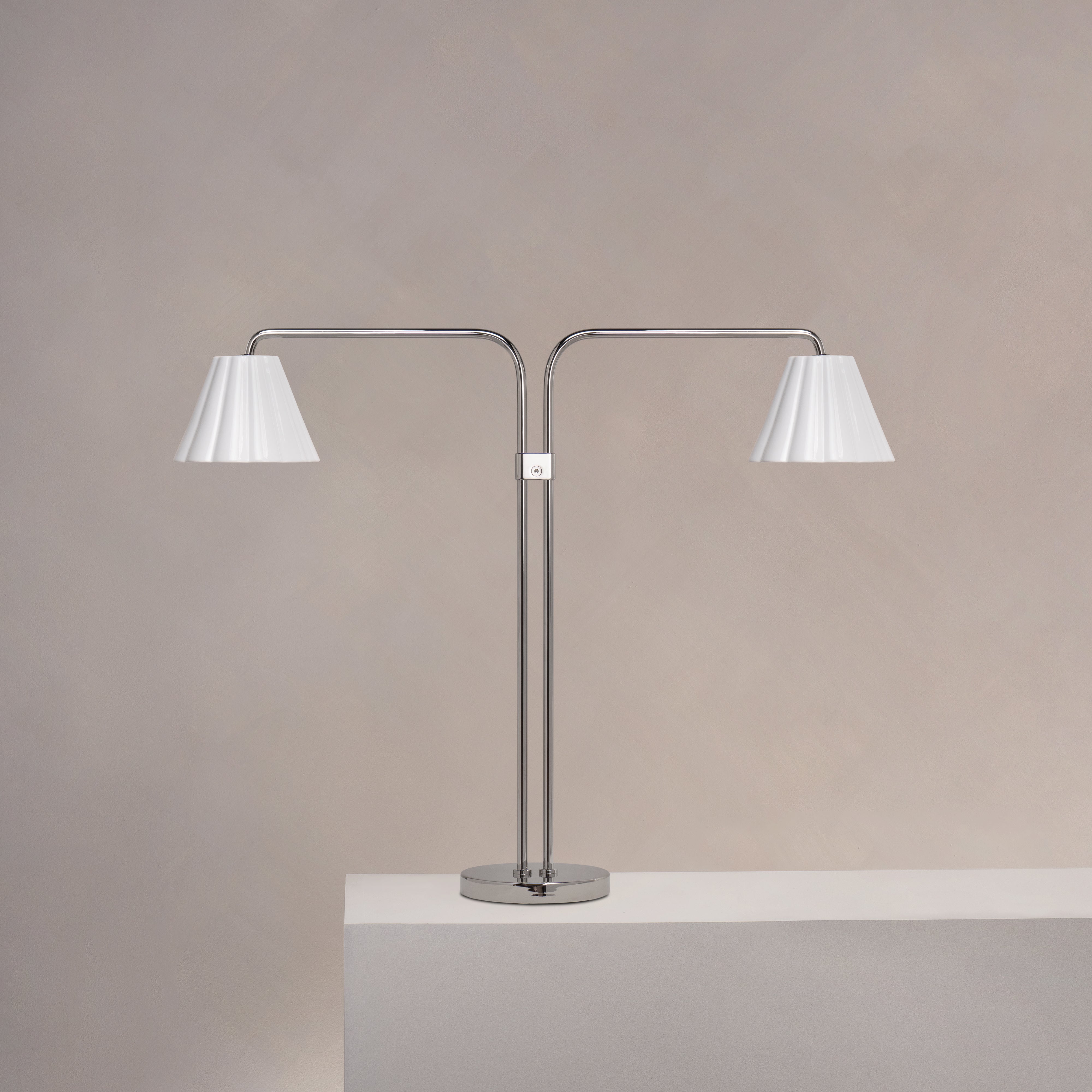 This dual table lamp is based on a bespoke design we created for our own headquarters.