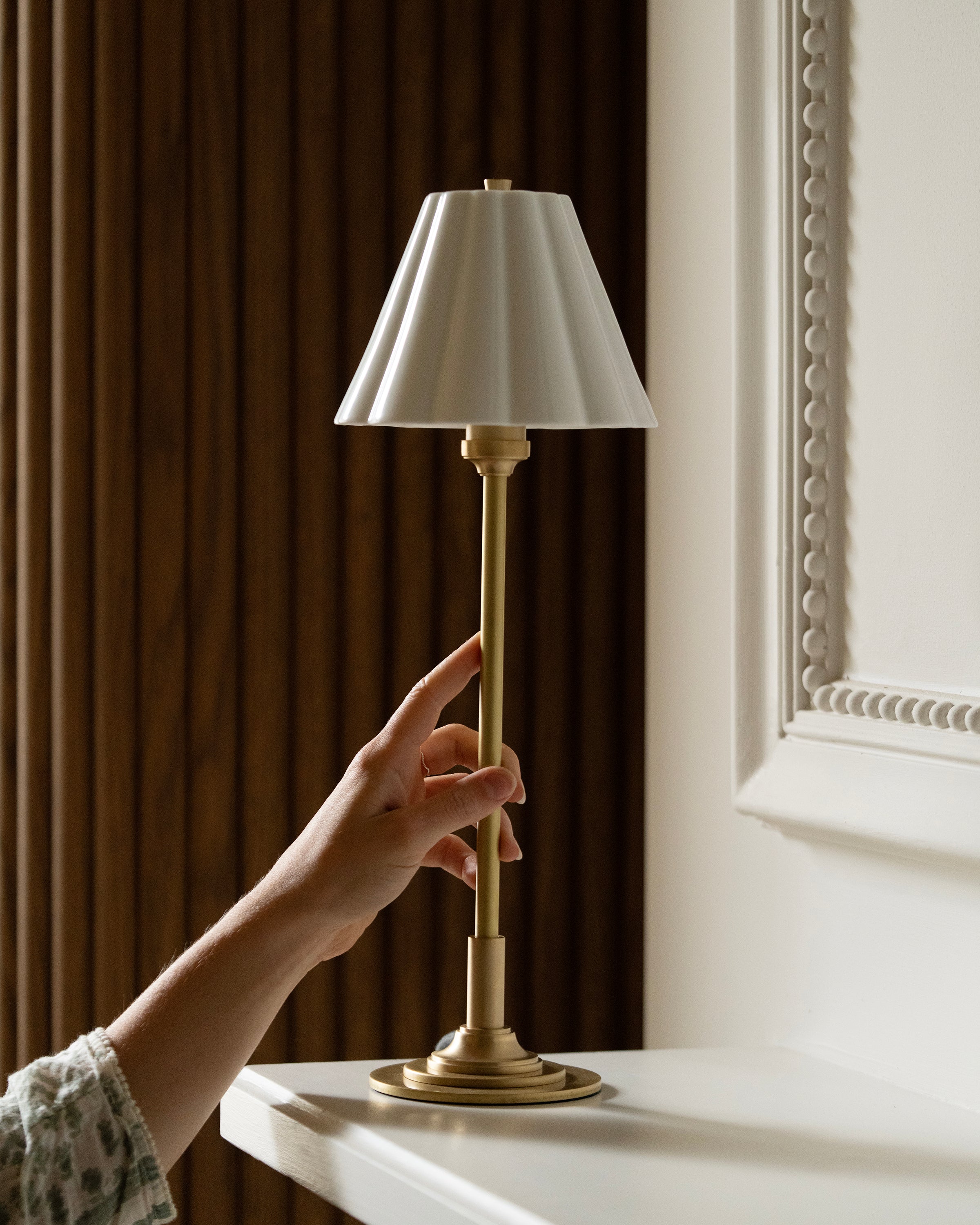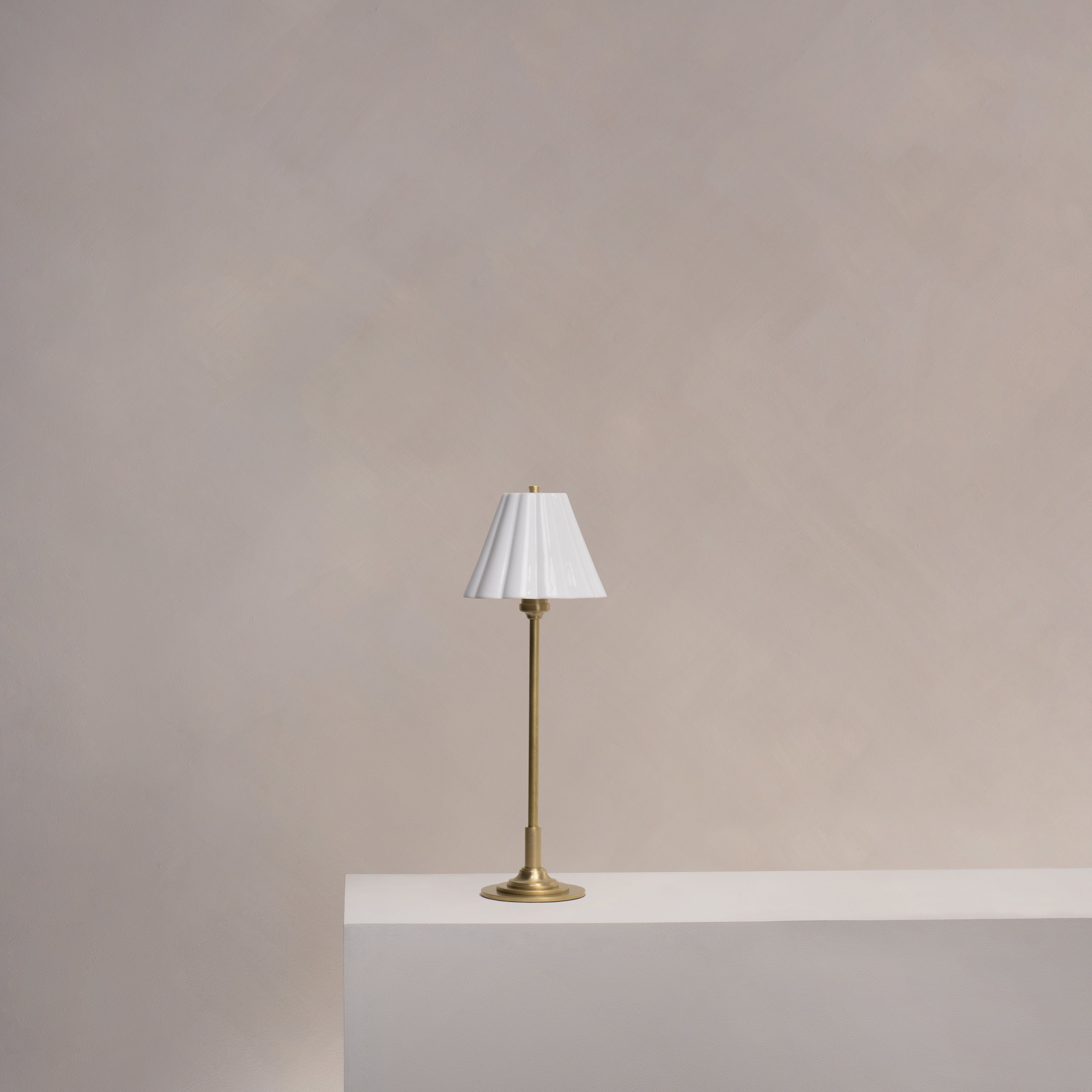 The gently scalloped fine porcelain shade provides a warm, atmospheric glow with absolutely no glare. We’ve opted for a very subtle scallop that won’t go out of style.