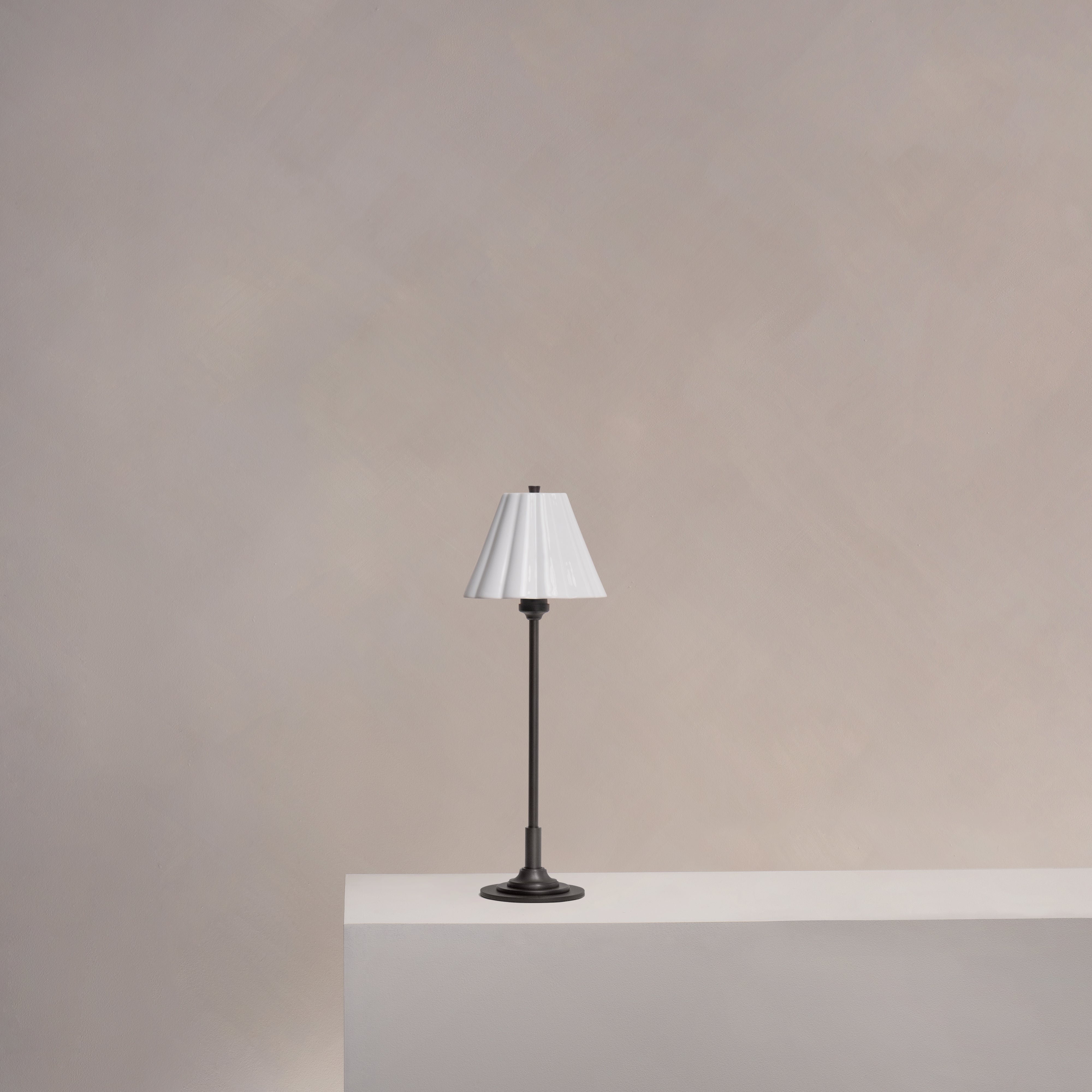 The gently scalloped fine porcelain shade provides a warm, atmospheric glow with absolutely no glare. We’ve opted for a very subtle scallop that won’t go out of style.