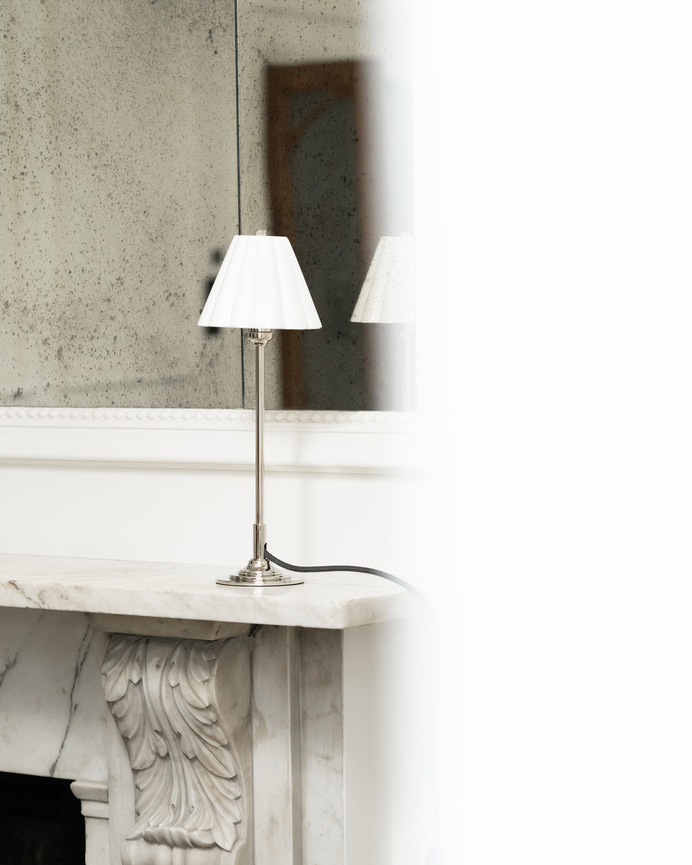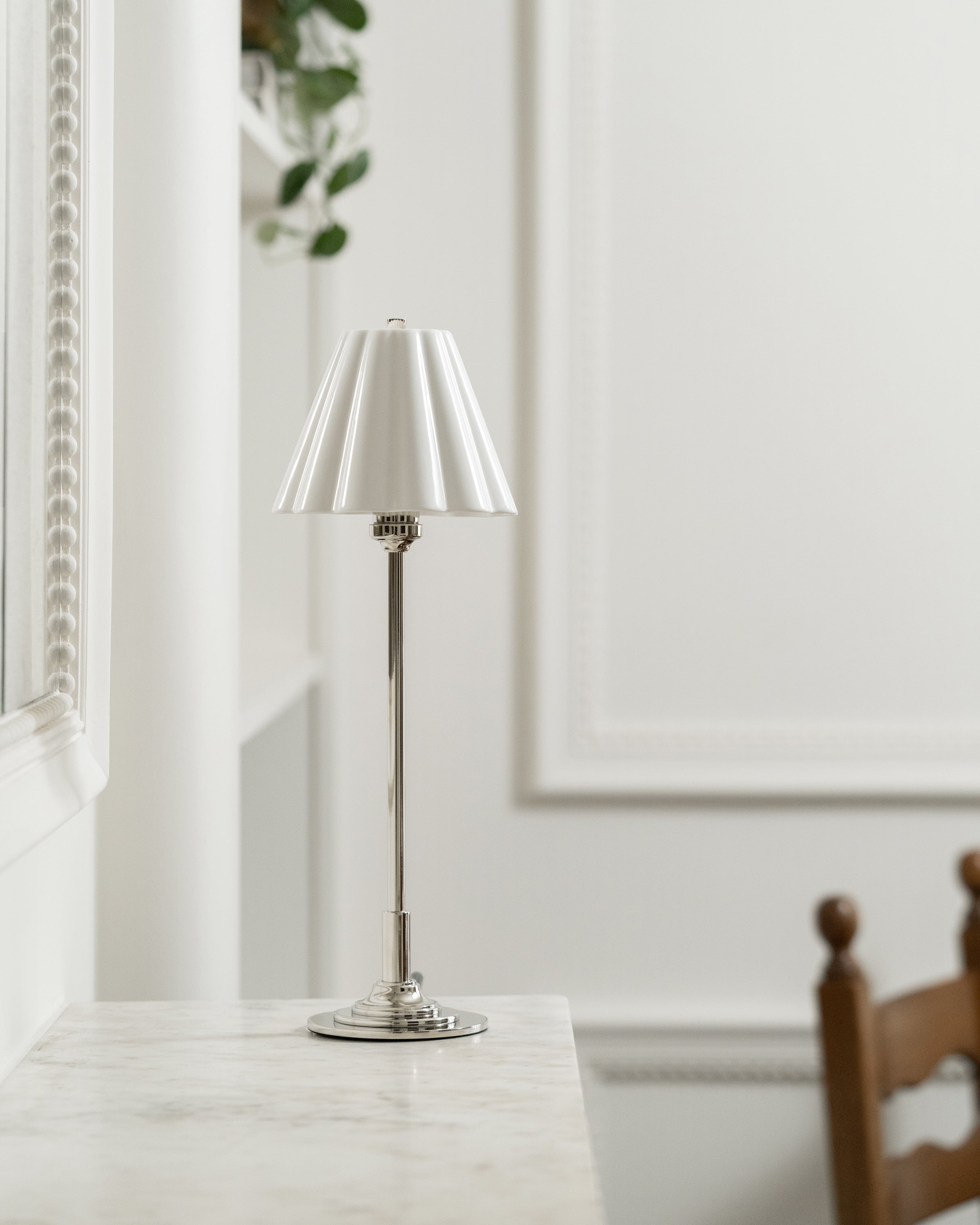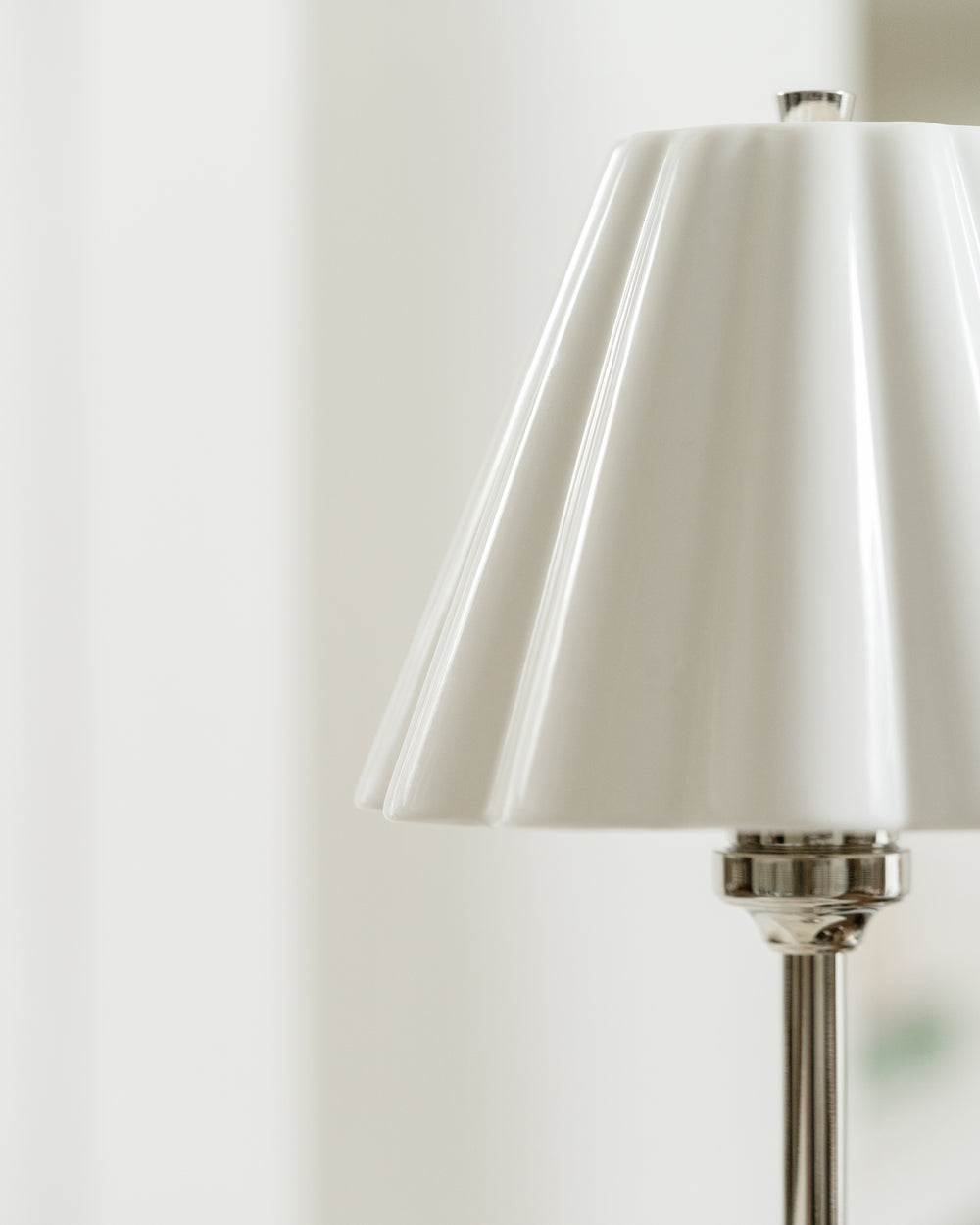 The gently scalloped fine porcelain shade provides a warm, atmospheric glow with absolutely no glare. We’ve opted for a very subtle scallop that won’t go out of style.