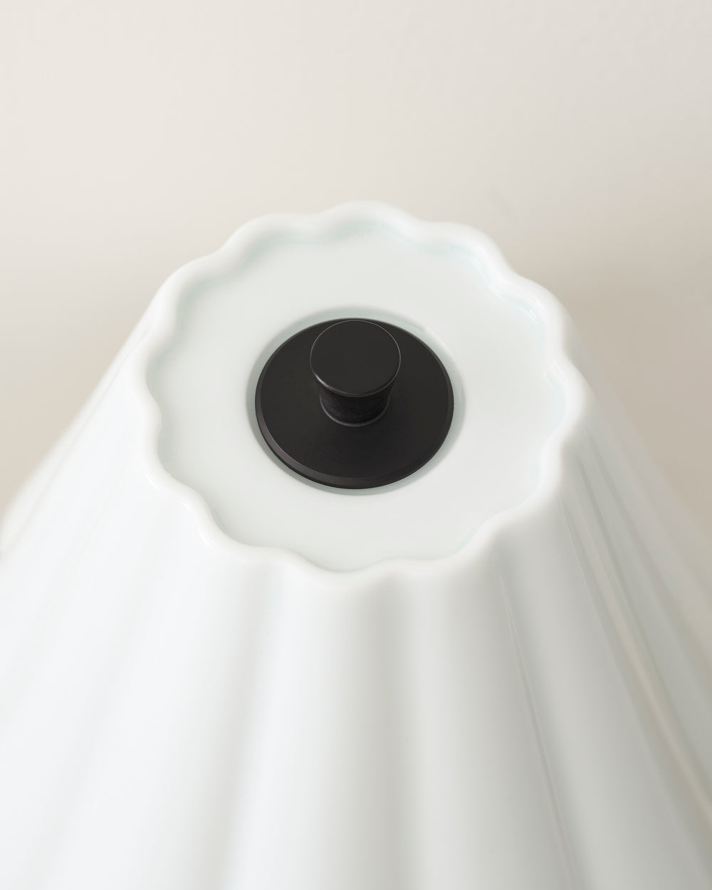 The gently scalloped fine porcelain shade provides a warm, atmospheric glow with absolutely no glare. We’ve opted for a very subtle scallop that won’t go out of style.