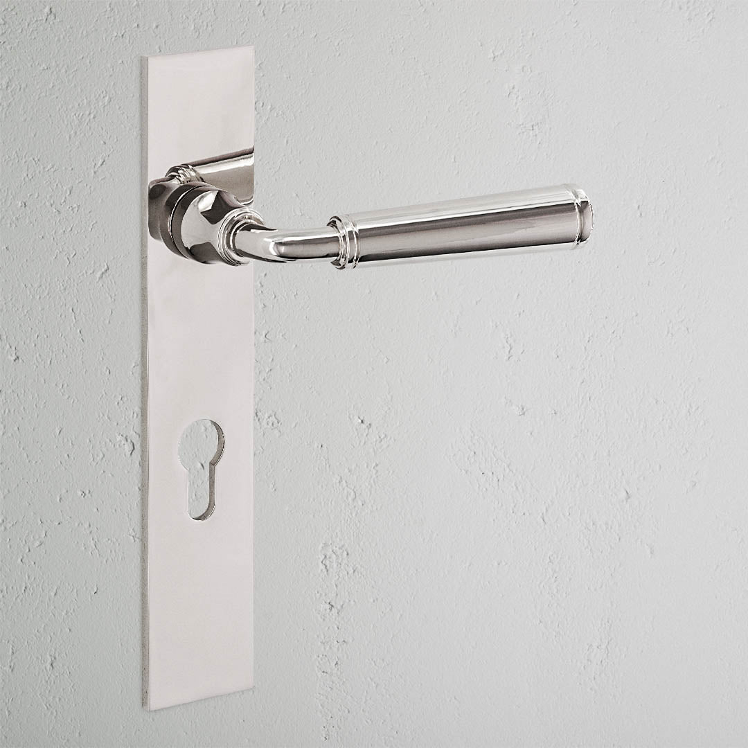 This version includes a low-profile, long backplate designed for use with a Euro cylinder lock.