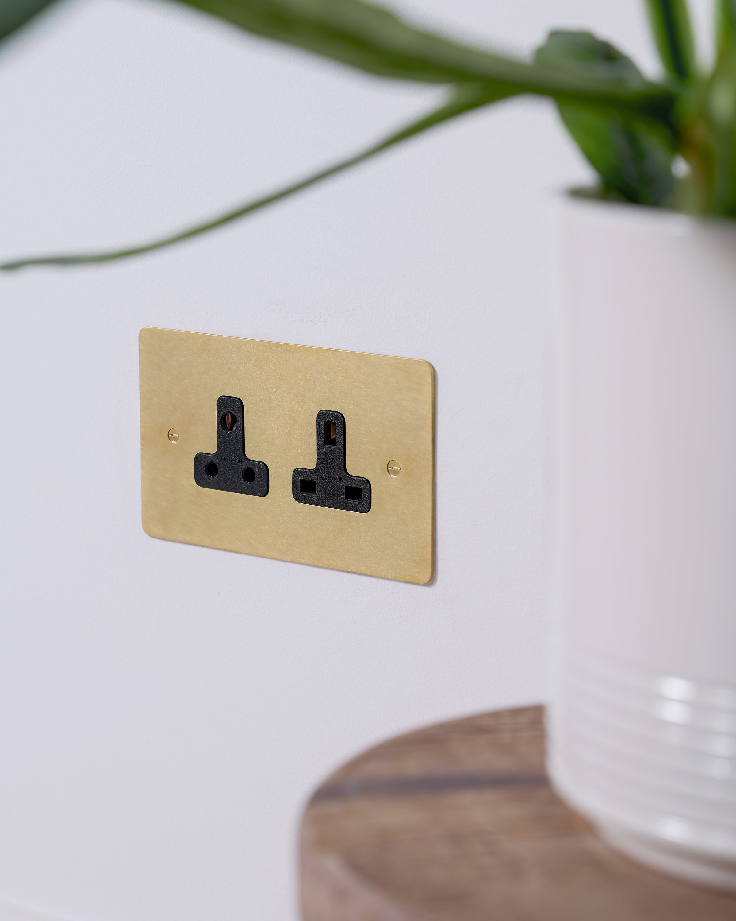 This double mixed socket combines a 13A and 5A unswitched socket on one plate.
