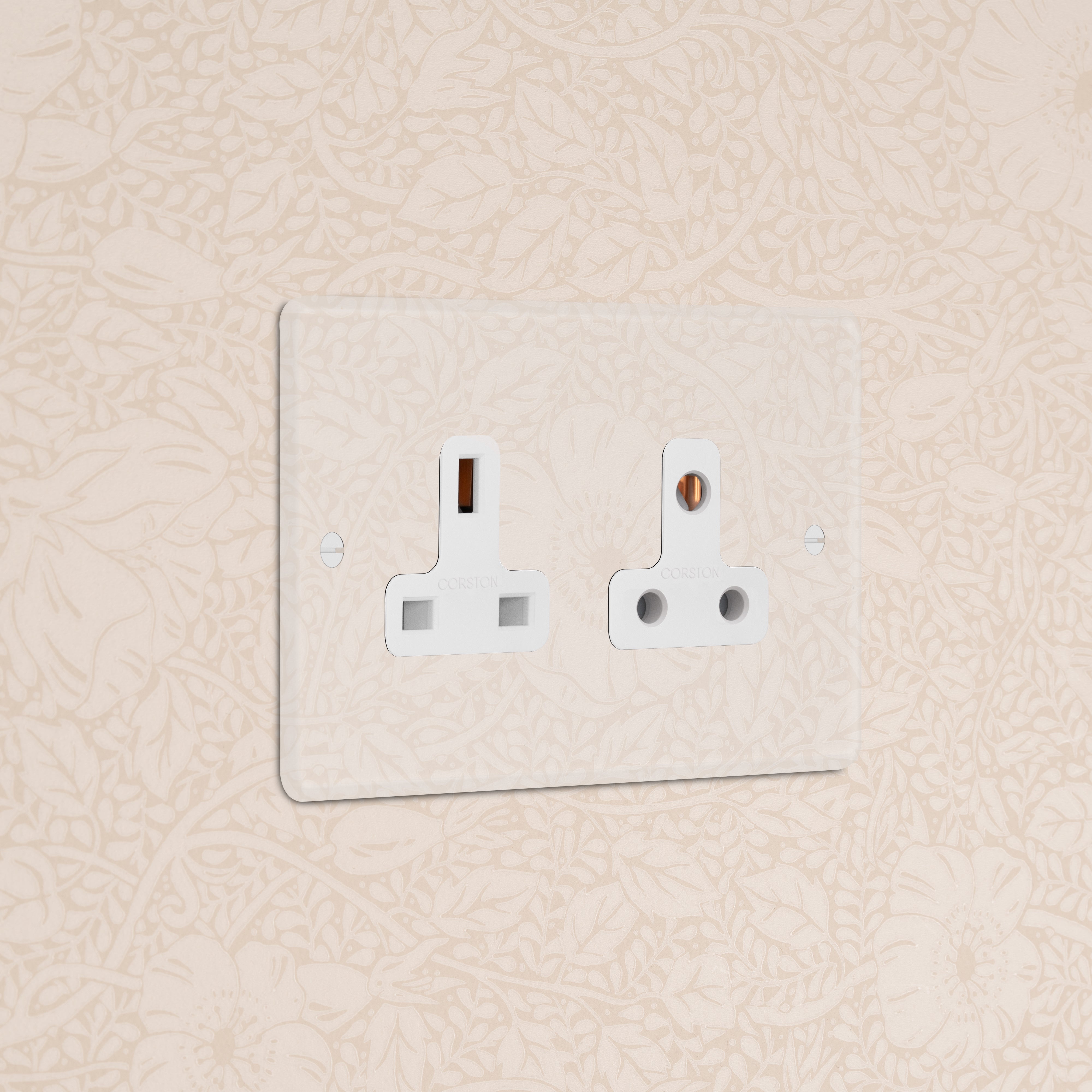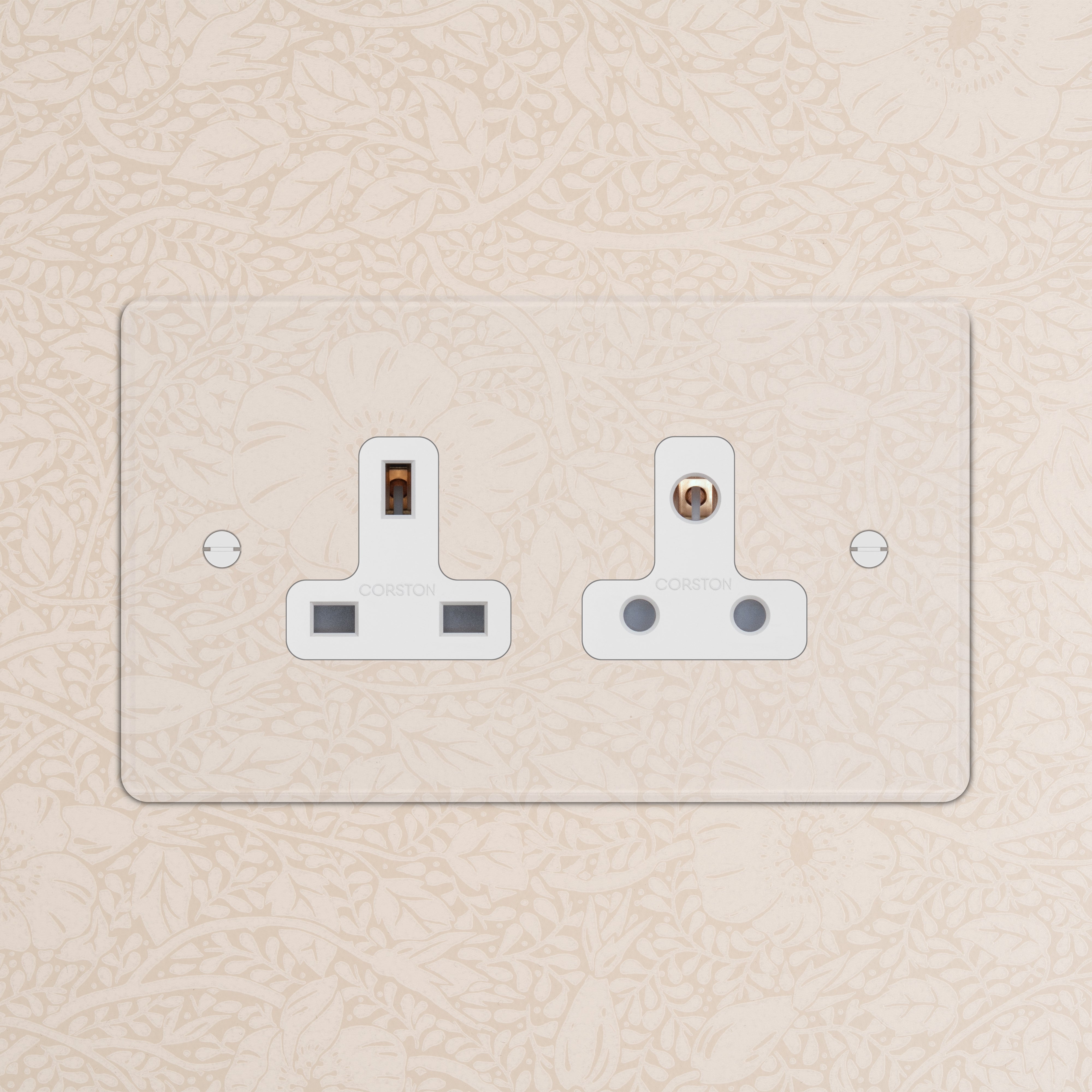 This double mixed socket combines a 13A and 5A unswitched socket on one plate.
